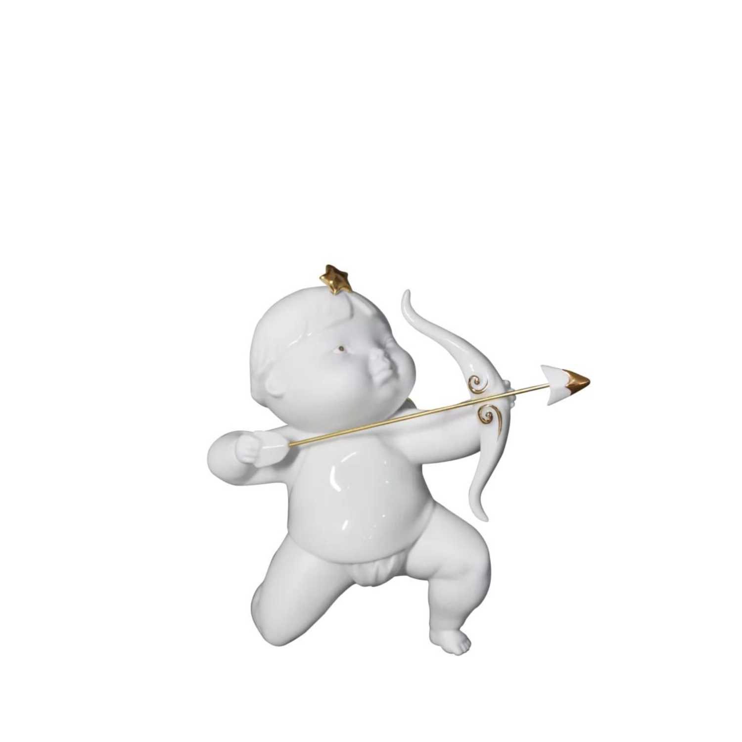 In the work "Sagittarius" of "1300 Fine Porcelain", the little angel is kneeling on one foot with a bow and arrow. He looks serious, full of energy, very cute!