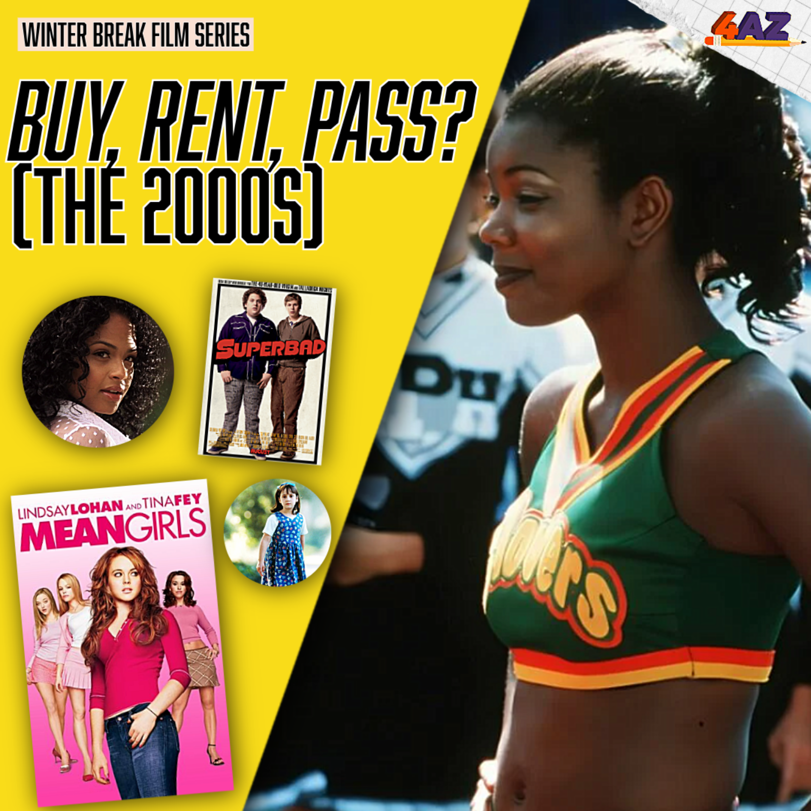 Tyler welcomes back Mike Steph and Sarah Beth for a special winter break film series. It’s our final episode, and the trio plays a game of ‘Buy, Rent, Pass?” for three school-related films from the 2000s: “Bring It On,” “Meangirls,” and “Superbad.” They also give a shout-out to 1996’s “Matilda” and have a Christina Millian appreciation moment.
