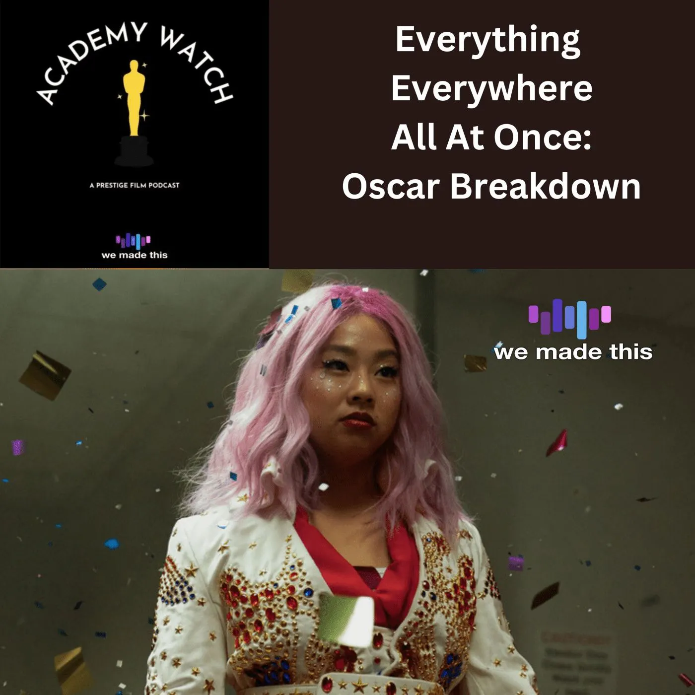 EVERYTHING EVERYWHERE ALL AT ONCE is not only one of the films of the year, but also a unique look into the future of filmmaking, should anyone be so bold to follow in its footsteps.With 11 Oscar Nominations, Host Bo Nicholson and Guest Ian Buckley give out their personal awards to the film and assess its chances at the Oscars, while delving into its themes in the spoiler section.Host / EditorBo Nicholson (@Bo_Pioneer)Listen to his other shows:https://linktr.ee/BoNicholsonGuestIan BuckleyCheck out his other shows:We Are StarfleetThe WayIllumination Above AllExecutive ProducerTony Black (@ajblackwriter)Support the We Made This podcast network on Patreon:www.patreon.com/wemadethisWe Made This on Twitter: @wmt_network & @academy_watchwemadethisnetwork.comTitle music: Lieutenant Baker (c) Mary Riddle via epidemicsound.comOther Music: Big Announcement (c) Out To The World via epidemicsound.com