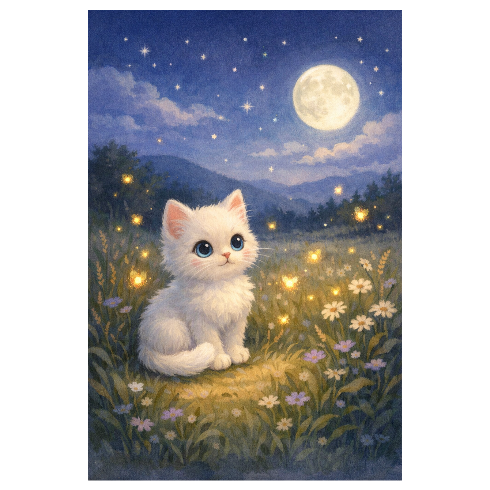 As dusk settles over a quiet village, a curious kitten named Luna follows a mysterious glow into the night. Guided by a swarm of gentle fireflies, she discovers a hidden meadow, a moment of wonder, and the comforting magic of the dark.
