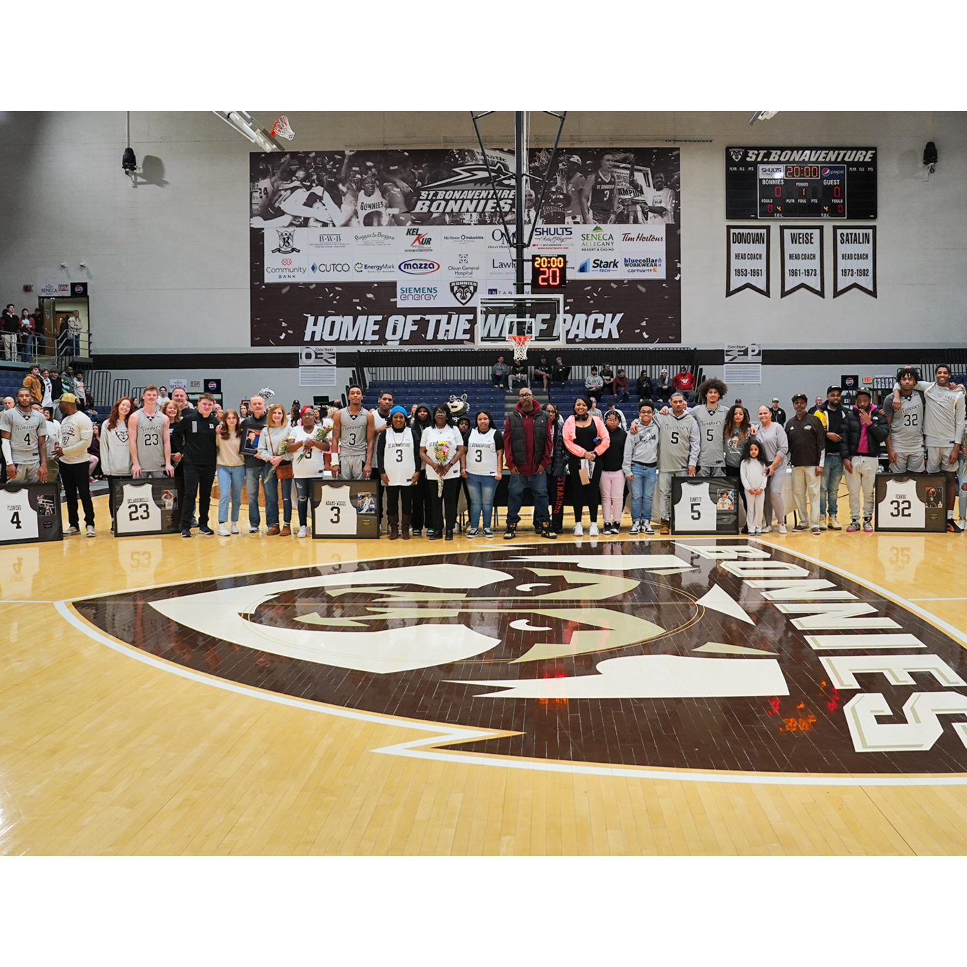 The Bonnies honored graduating seniors and fifth-year student athletes Anthony Belardinelli, Chad Venning, Daryl Banks III, Moses Flowers, Mika Adams-Woods and Charles Pride.