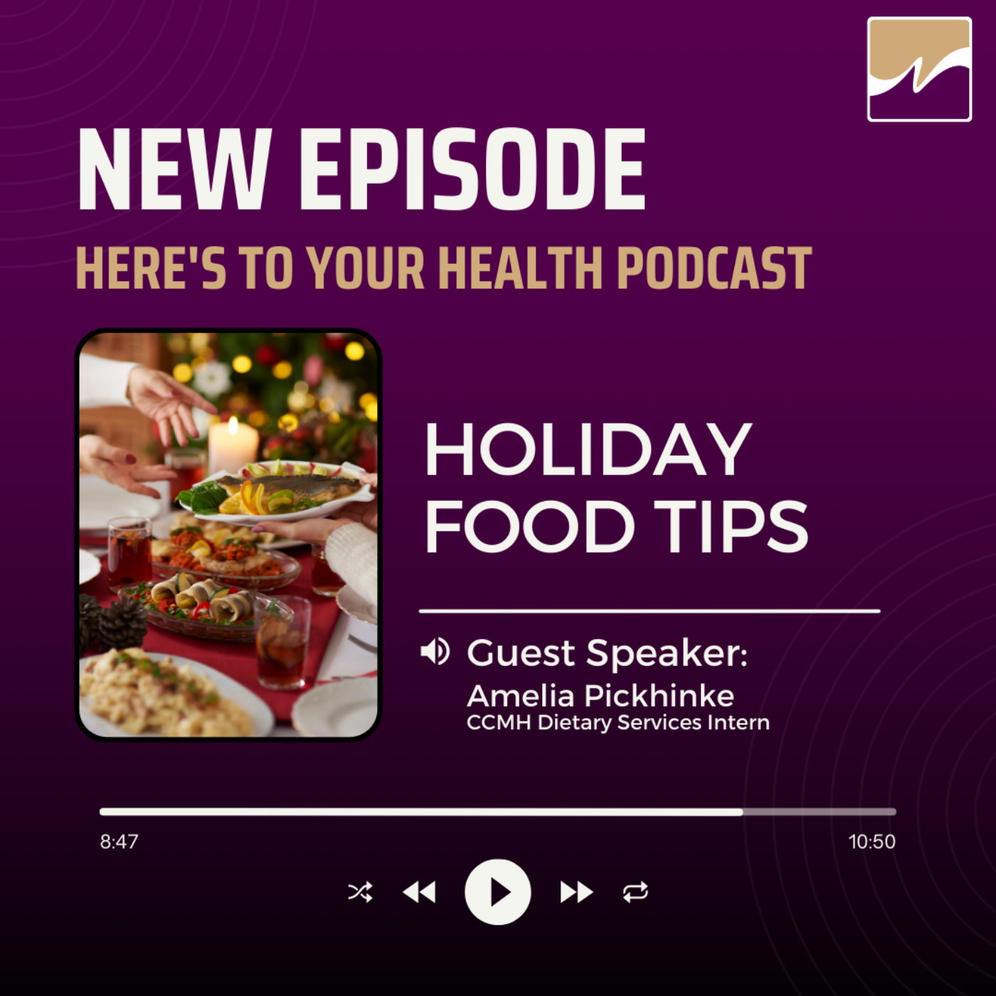 The holiday season usually involves more family and friends, and more opportunities for food with added salt and sugar. On this podcast, Amelia Pickhinke, intern at CCMH and soon to be a Registered Dietitian, discusses holiday heart syndrome, healthy food swaps, and building good eating habits that endure during the holidays and into the new year. She also talks about the one thing we can do to make the holiday season a healthier time.