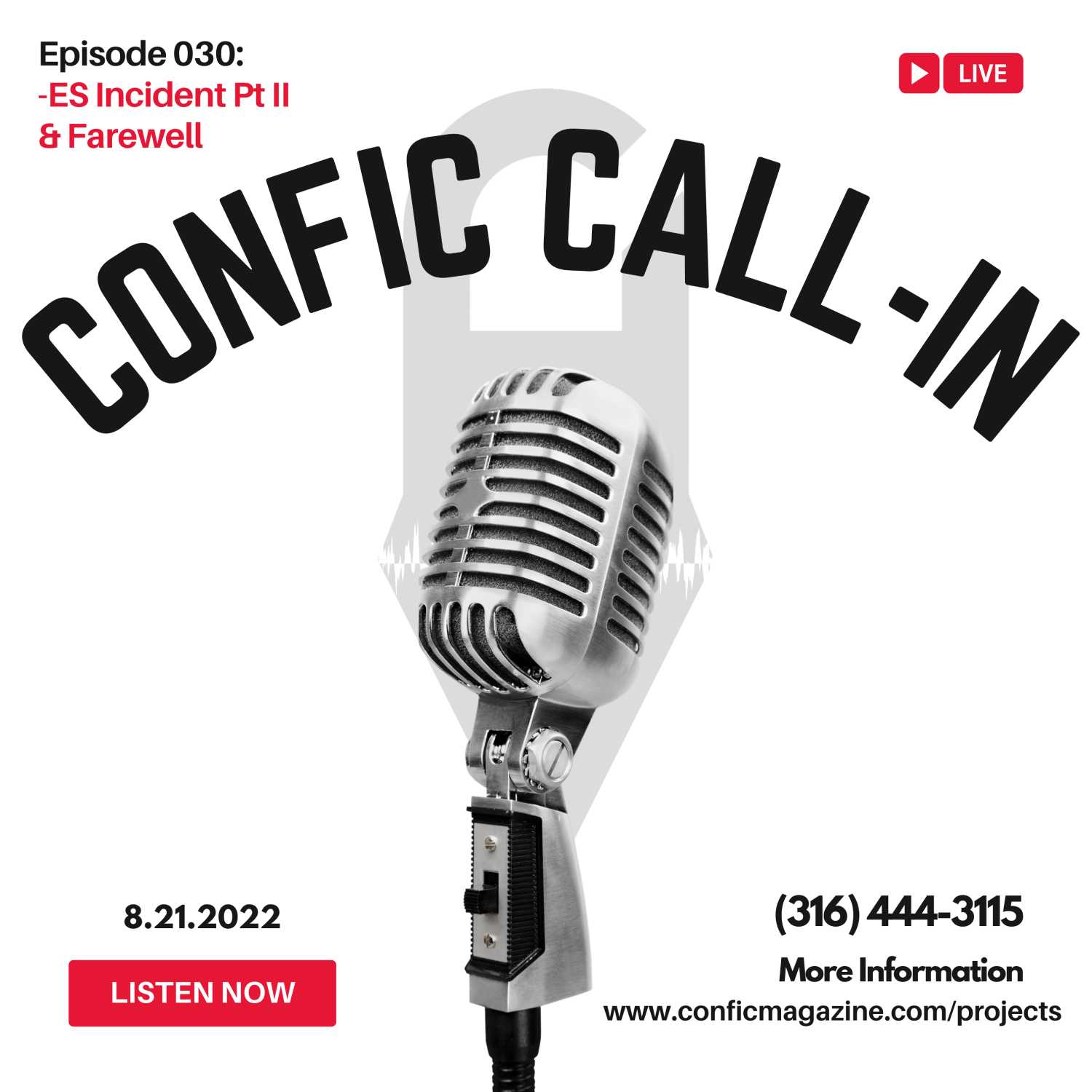 We respond to the current situation and leave parting words of wisdom. This is the last Confic Call-In episode! I want to thank everyone for a great show and set of products I can and will be proud of for years to come.