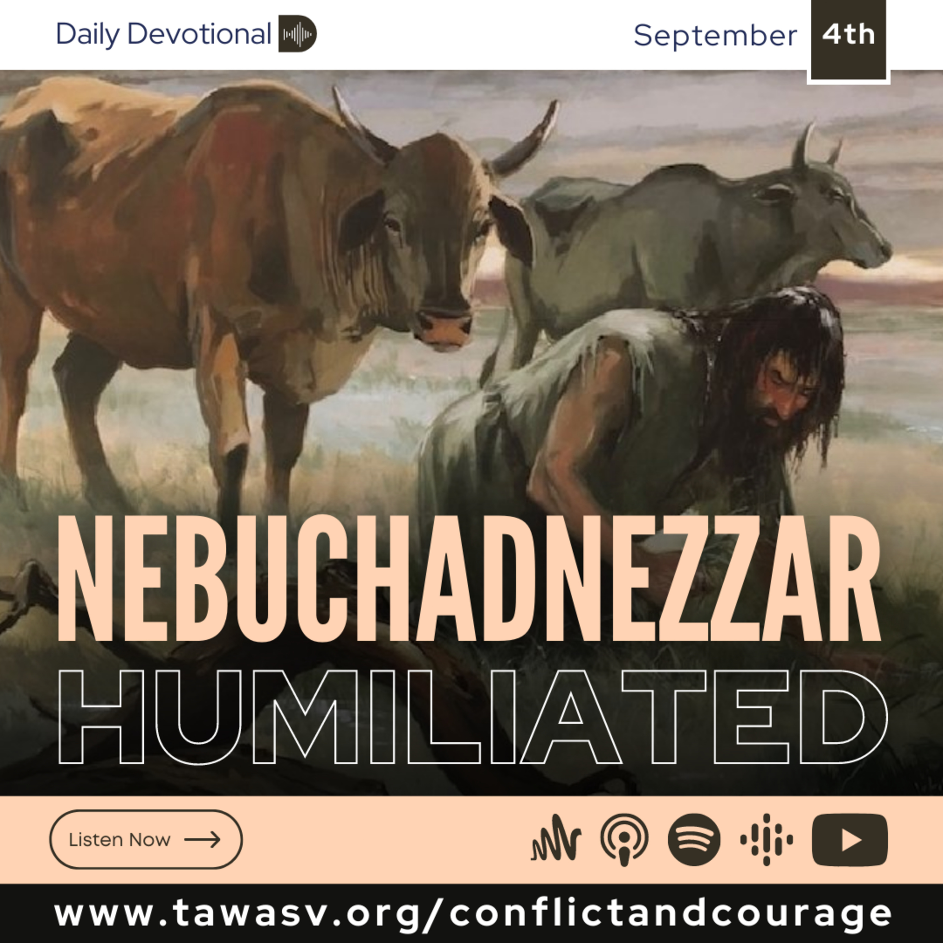 Nebuchadnezzar did not heed the heaven-sent message. One year after he had been thus warned, as he walked in his palace, he said within himself, "Is not this great Babylon, that I have built . . .?" The God of heaven read the heart of the king, and heard its whisperings of self-congratulation. . . . "There fell a voice from heaven, saying, . . . The kingdom is departed from thee. And they shall drive thee from men, and thy dwelling shall be with the beasts of the field: they shall make thee to eat grass as oxen, and seven times shall pass over thee, until thou know that the Most High ruleth in the kingdom of men, and giveth it to whomsoever he will. The same hour was the thing fulfilled upon Nebuchadnezzar." {CC 253.3}