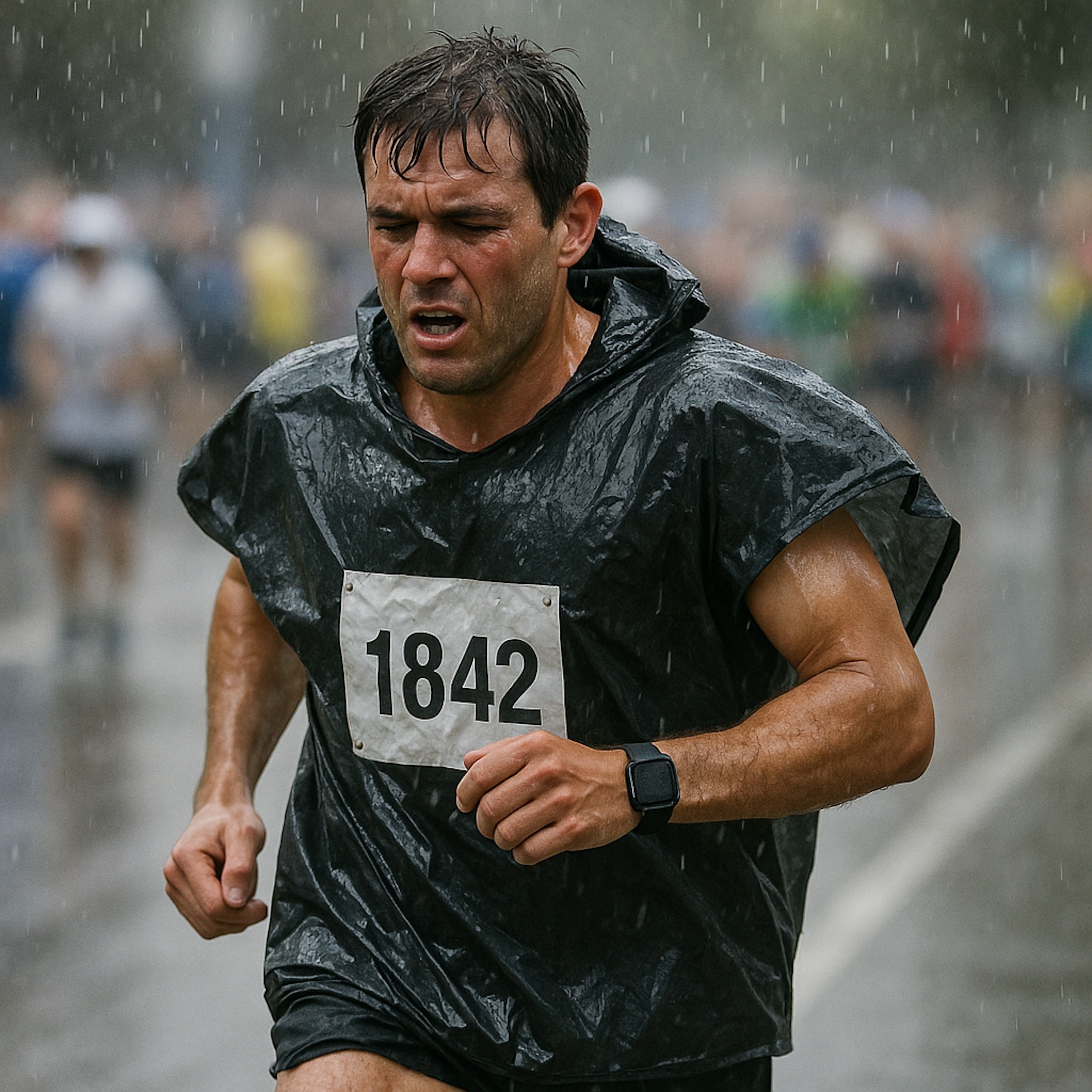 Yo no corrí, pero estuve animando y fijándome en el atuendo de los corredores para para sobrevivir a la lluvia... y vi un montón de errores, sobre todo el prohibidísimo chubasquero-basura no-transpirable que tan peligroso es para los corredores ya que te cueces por dentro, te suben las pulsaciones, no transpira... y puedes acabar incluso con un golpe de calor.