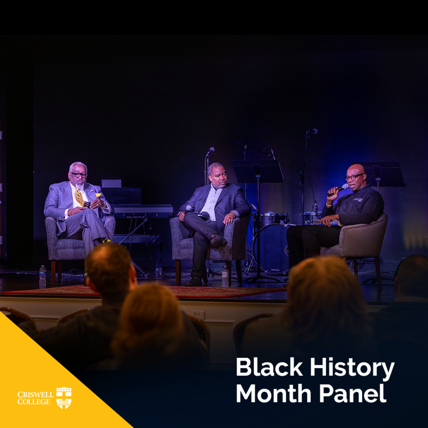 Black History Month Panel with Dr. Delvin Atchison, Rev. Stephen Brown, and Dr. Curtis Woods.
