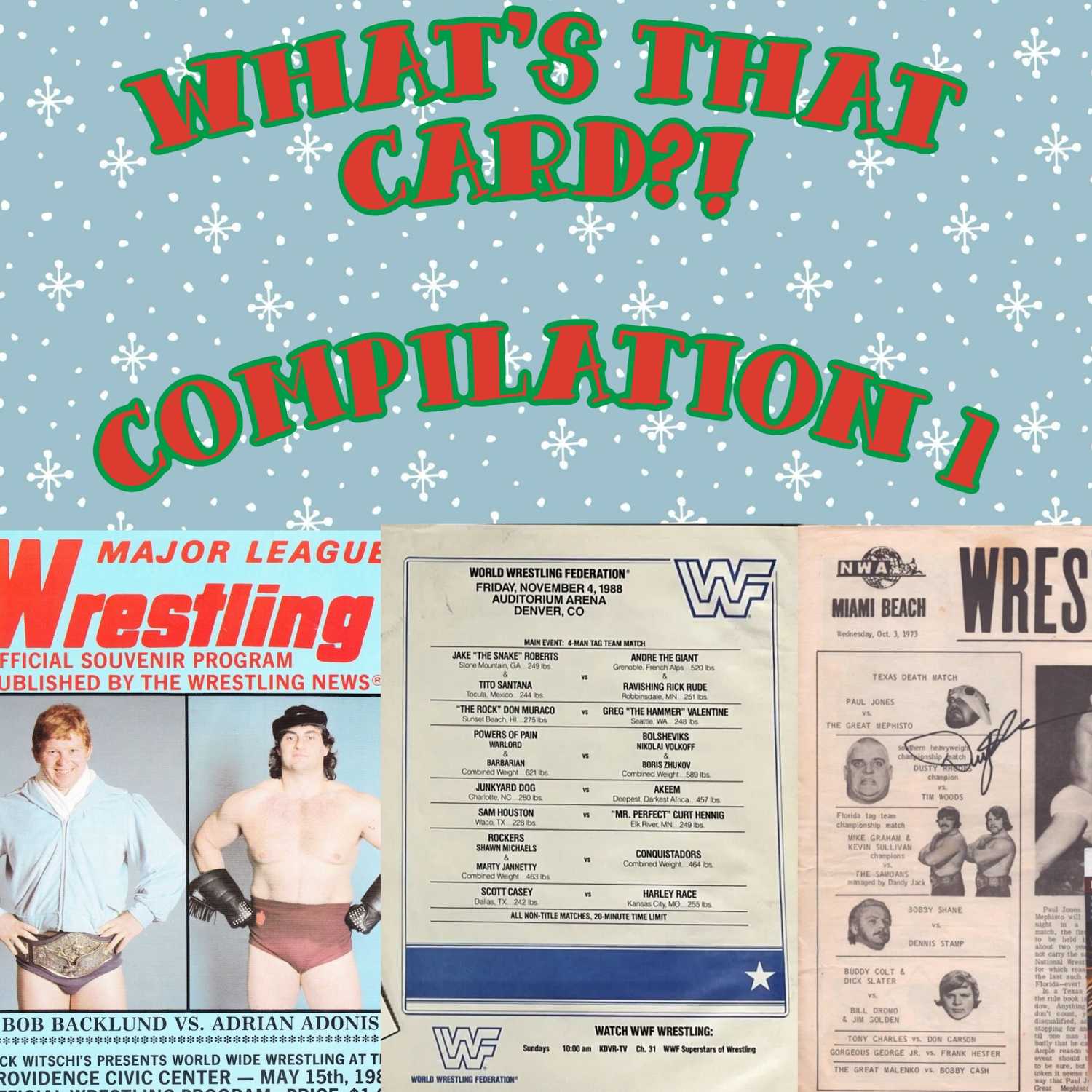 This week we delivered a new video on our YouTube channel so for our audio listeners we present the first compilation for What's That Card?! This is a show where we give each other random wrestling programs and the other person has to guess the company and year. If you've heard of this before, well we're trying it too!