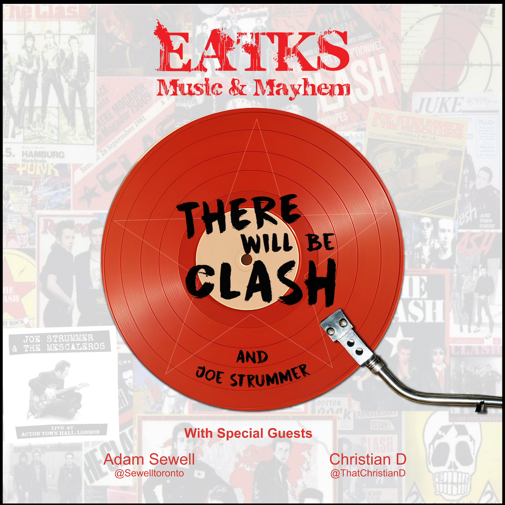 Long time music pals of EatKS Christian D the frontman of Christian D and the Sinners and Adam Sewell frontman of Monster Voodoo Machine, Def Con Sound System, artist manager and writer joined me derailing conversations about The Clash and Joe Strummer.