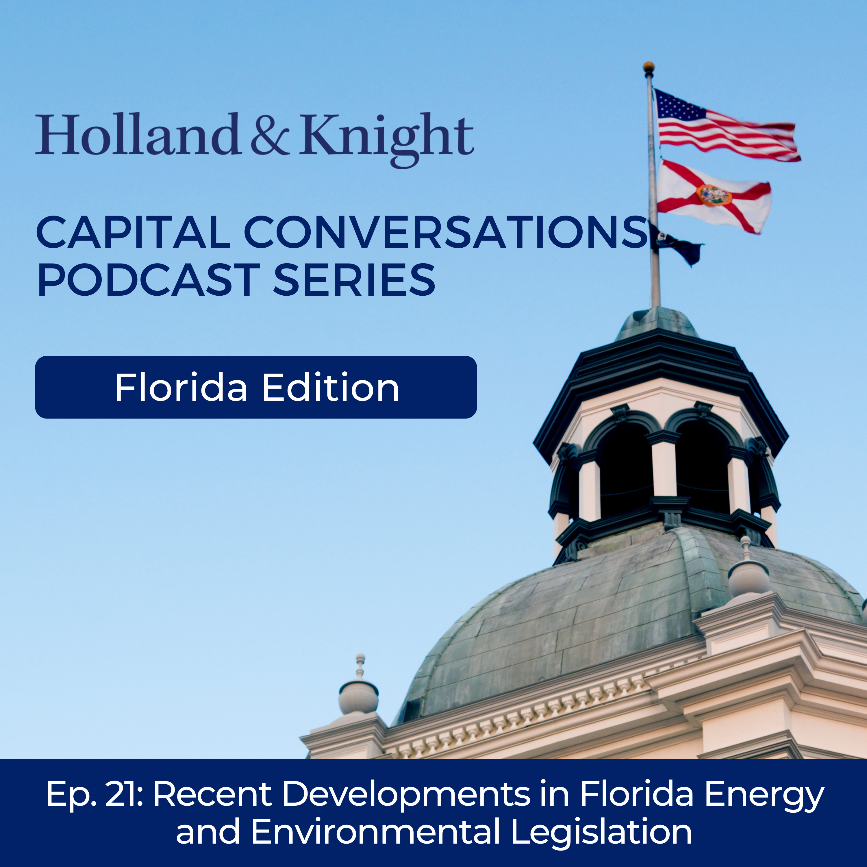 In this episode of our "Florida Capital Conversations" podcast series, policy advisor Jon Steversonand attorney Lawrence Sellers discuss significant legislative developments affecting the energy and environmental sectors in Florida. The conversation covers the statewide stormwater rule, energy resources, water legislation and proposed constitutional amendments. Mr. Sellers specifically addresses the economic implications of modifications to stormwater regulations, while Mr. Steverson analyzes the provisions of the energy resources bill. They conclude the conversation by reviewing measures related to bear hunting, the release of balloons and specialized license plates.