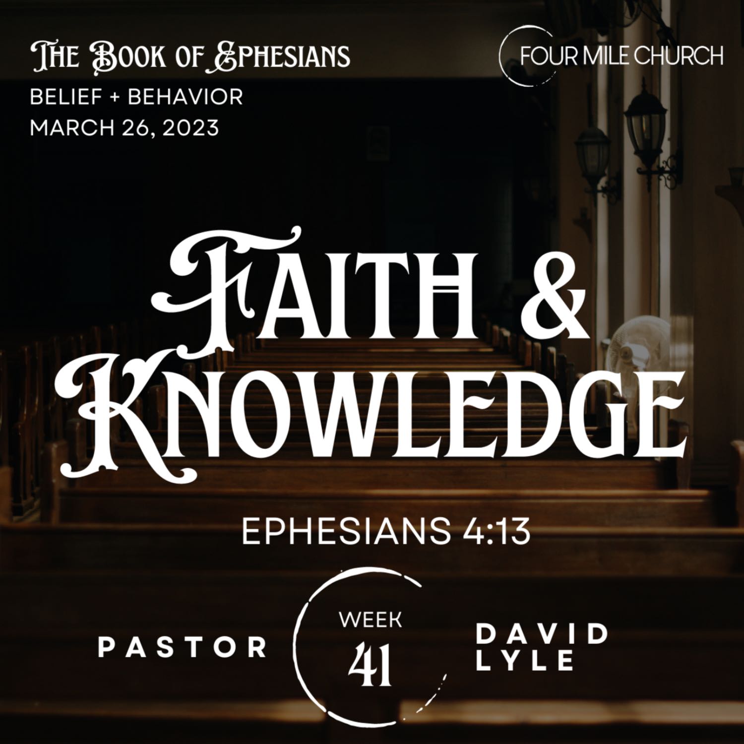 March 26, 2023 Faith + Knowledge Ephesians 4:13 “until we all attain to the unity of the faith and of the knowledge of the Son of God, to mature manhood, to the measure of the stature of the fullness of Christ."YouTube link
