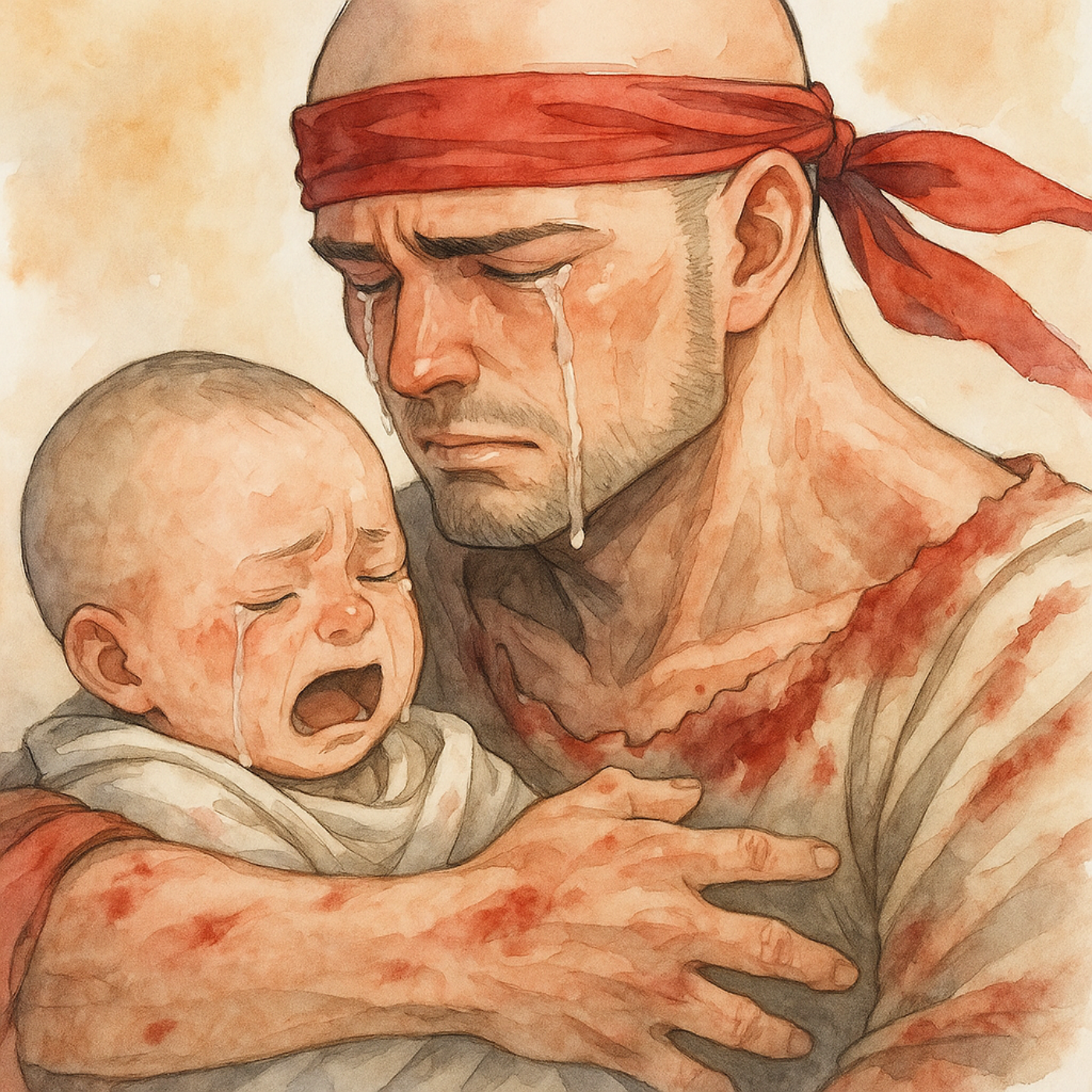 Un uomo afferrò il bambino, urlando come un pazzo.