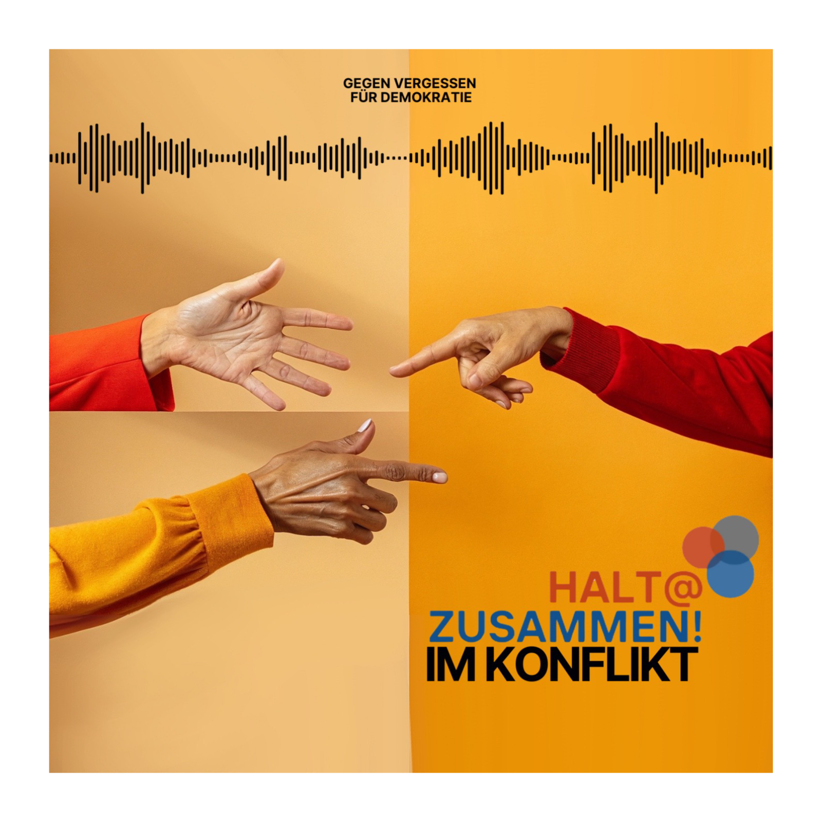 Wir haben einen neuen Podcast! Bei „halt@zusammen! - Im Konflikt“ beschäftigen wir uns mit gesellschaftlichen Konflikten. Wir sprechen mit Expert:innen darüber, warum es in einer Demokratie überhaupt wichtig ist, sich mit Konflikten auseinanderzusetzen, und darüber, wie man konstruktiv mit ihnen umgehen kann.