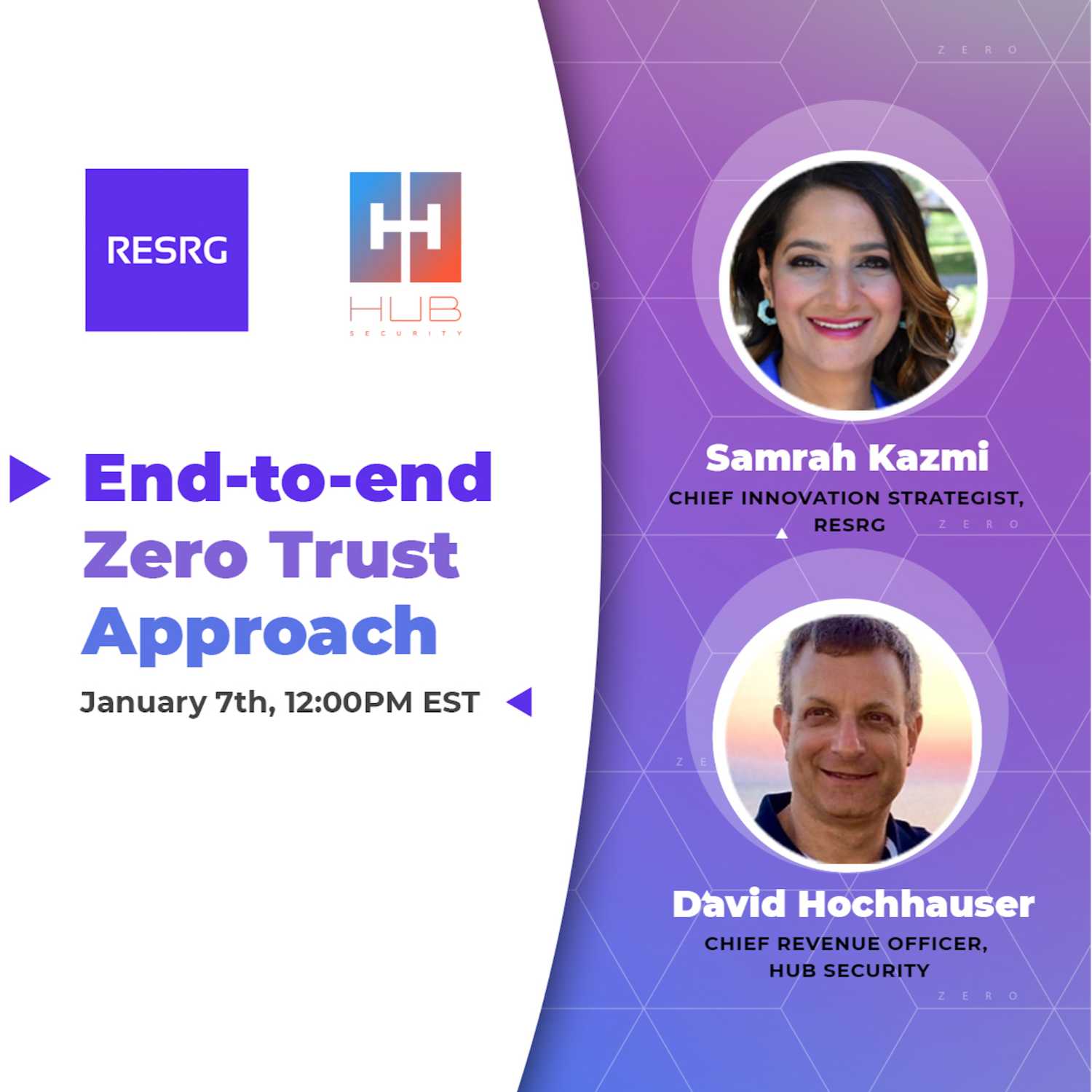 Hub Security is excited to host Samrah Kazmi, Chief Innovation Strategist at RESRG, in our "End-to-End Zero Trust Approach" webinar. We discussed how integrated network security allows organizations to take advantage of the intelligence and visibility their networks provide to make more informed decisions regarding policy and threats. We will examine Zero Trust strategies, identity-based access policies, automated segmentation, as well as regulatory compliance, and show how an intelligent network can make your organization safer.