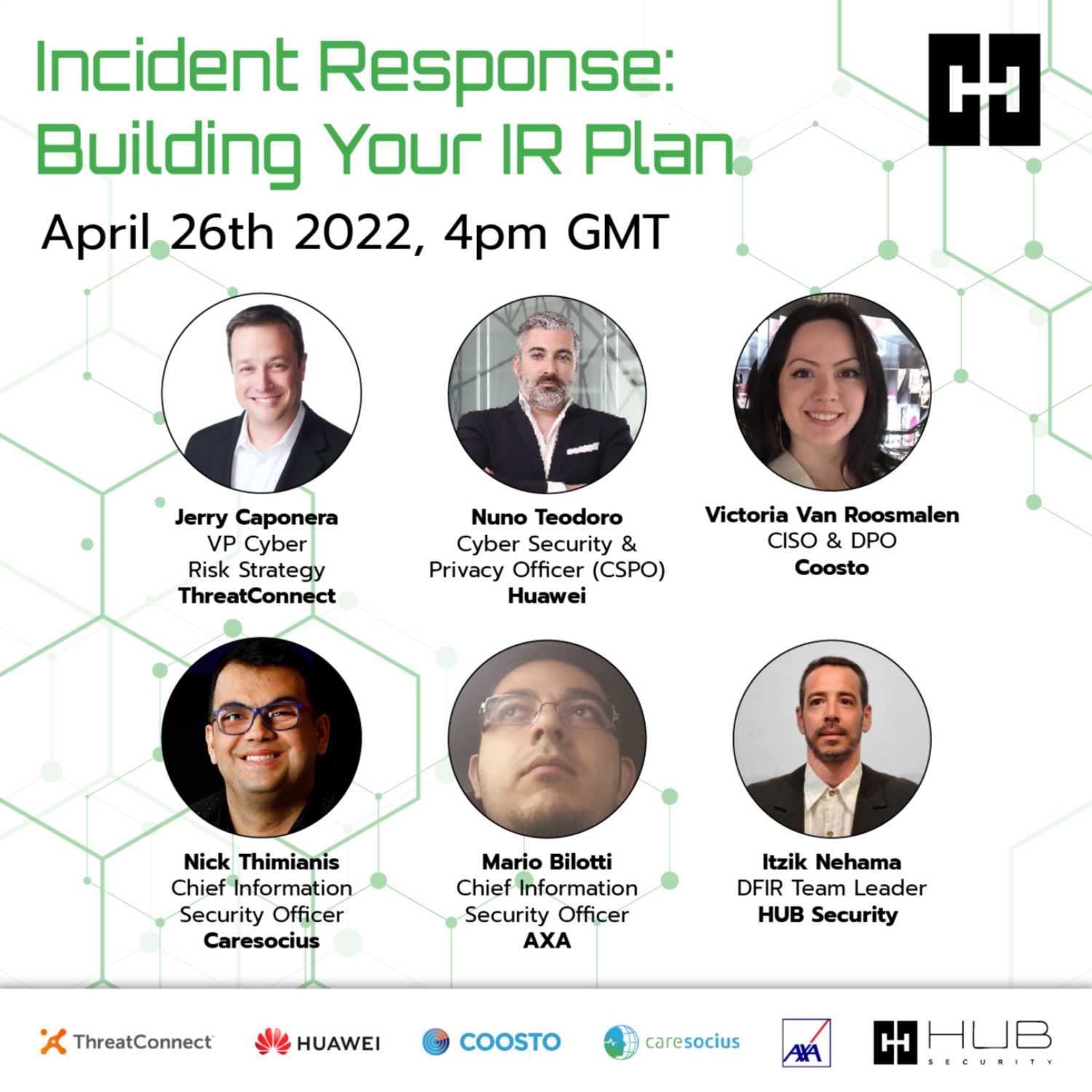 Speakers: Nuno Teodoro, Cyber Security and Privacy Officer, CISO at Huawei Mario Bilotti, CISO at AXA Victoria Van Roosmalen, CISO & DPO at Coosto Jerry Caponera, VP Cyber Risk Strategy at ThreatConnect Nick Thimianis, CISO at Caresocius Itzik Nehama, DFIR Team Leader at HUB Security