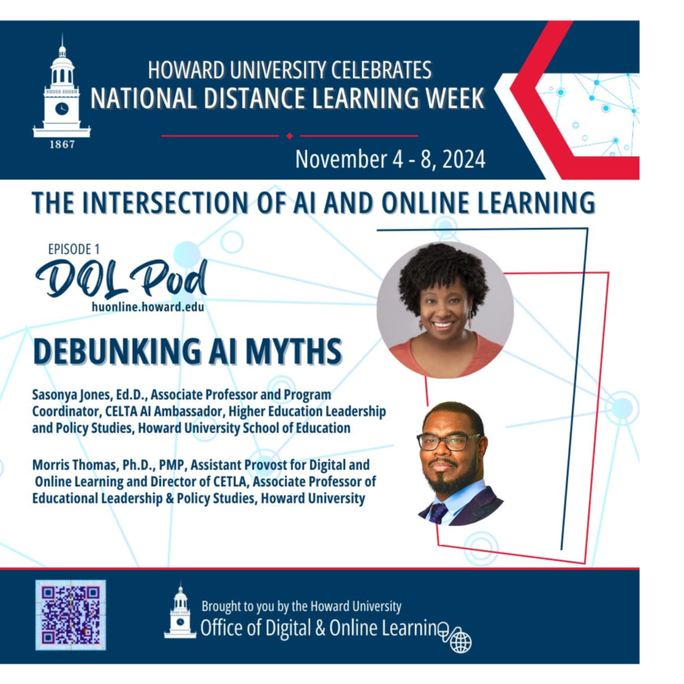 Dr. Thomas Morris, assistant provost for Digital and Online Learning, and Dr. Sonia Jones, an associate professor and AI ambassador for CETLA at Howard University, discuss debunking AI myths in higher education. They emphasize the importance of a learning mindset and the need to embrace AI as a tool rather than fearing it. They address common misconceptions, such as AI replacing human educators, facilitating cheating, and compromising privacy. Jones highlights the potential of AI for personalized learning and academic support while acknowledging the need for human guidance and ethical considerations. They also discuss the importance of critical thinking and fact-checking when using AI, as it's not infallible and can produce inaccurate or biased information. The podcast calls to action for educators to engage with AI, learn about its capabilities and limitations, and contribute to its ethical development.