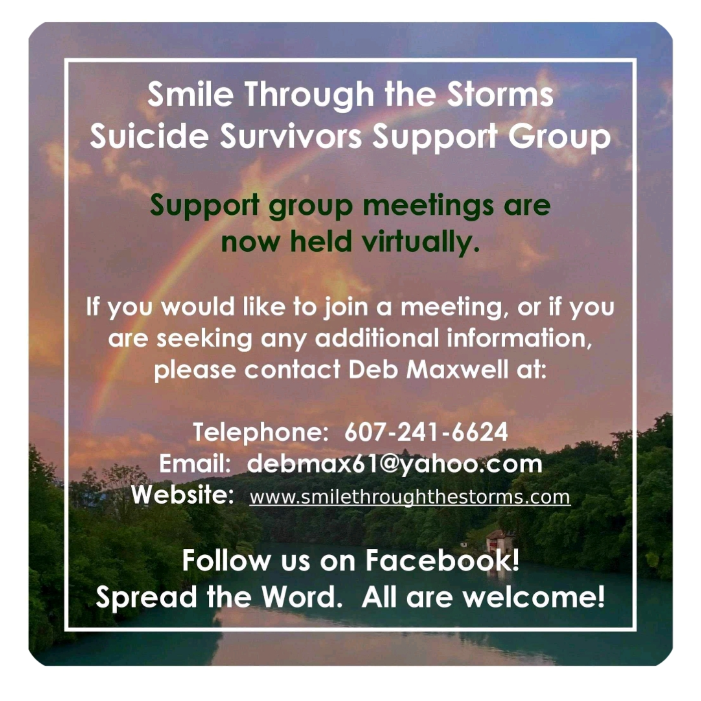 A support group called Smile Through The Storms was created and entered their lives. This group not only saved their life, but, helped them to grow and walk the journey together.