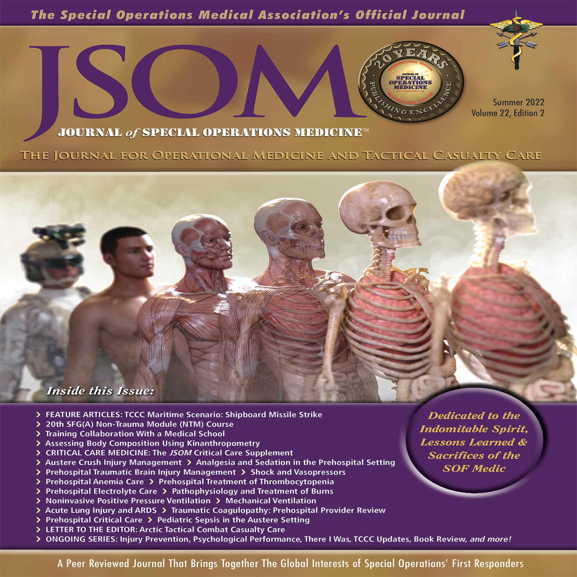 The Summer podcast features articles written primarily by medics and non-physicians. This entire journal is focused on the Critical Care aspect of SOF Medicine, so we wanted to invite the tip of the spear medics to talk about their research in this podcast. The first article is, "Analgesia and Sedation in the Prehospital Setting: A Critical Care Viewpoint" by Taylor DeRosiersm et. al. "Mechanical Ventilation: A Review for Special Operations Medical Personnel" by Jonathan Friedman and Seth Assar follows. We finish up with, "Airway Management With Noninvasive Positive Pressure Ventilation" by Papalski, Siedler, and Callaway. Be sure to follow us on our Social Media platforms @jsomonline https://jsom.us/Podcast.