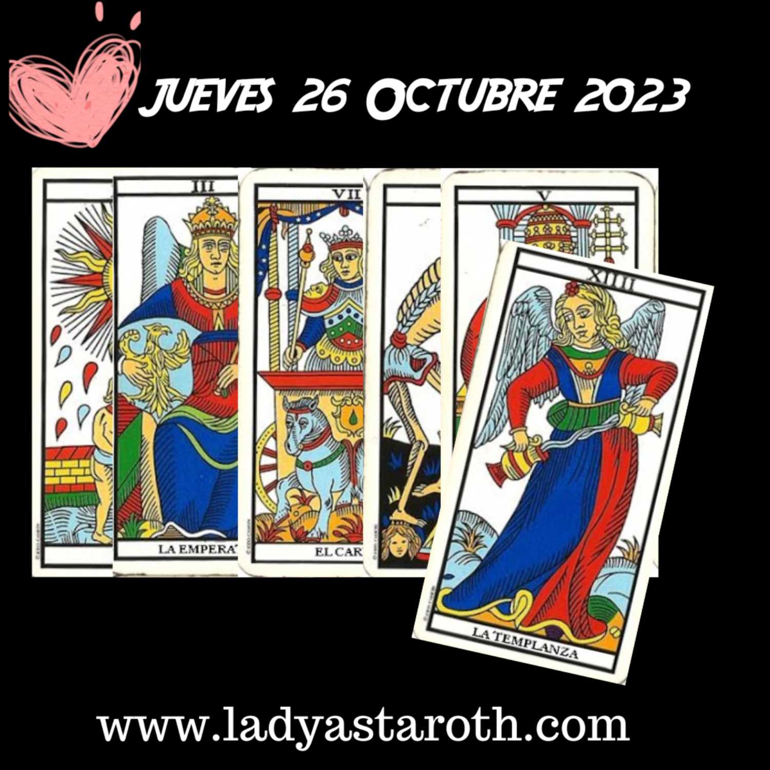 La Luna seguira por el signo de la disolucion (Piscis) pero a eso del medio dia (hora espaƱola) y casi llenita de luz del Sol que esta en Escorpio, entrara en el guerrero signo de Aries y ya prepararse para ser eclipsada el proximo dia 28 de octubre.Recuerda que la luna cuando esta en Aries, es guerrera, dinamica, peleona e invasiva, asi que sujeta los caballos bombon!Hoy tenemos otra vez, el Carro y la Templanza, anunciando posibles viajes o desplazamientos entre otras cosas.Me gusta mucho esta Emperatriz, viene muy bien aspectada, ya que nos pueden llegar noticias que nos empujen hacia nuestros objetivos, parece que va a ser un dia interesante.Claro, me he liado a sacar mas cartitas, y aunque la Muerte puede anunciar un corte, interrupcion o desconexion, incluso cambios en las dinamicas, luego viene un Papa que aporta algun tipo de acuerdoTe dejo el audio completo y gratuito en mi pagina web https://ladyastaroth.comUn BesoLady#tarot #mensajediario #tarotamor #felizjueves #tarotgratis #arcanosmayores #mensajediario #horoscopodeldia #lecturastarot #mensajetarot #predicciones #horoscopos