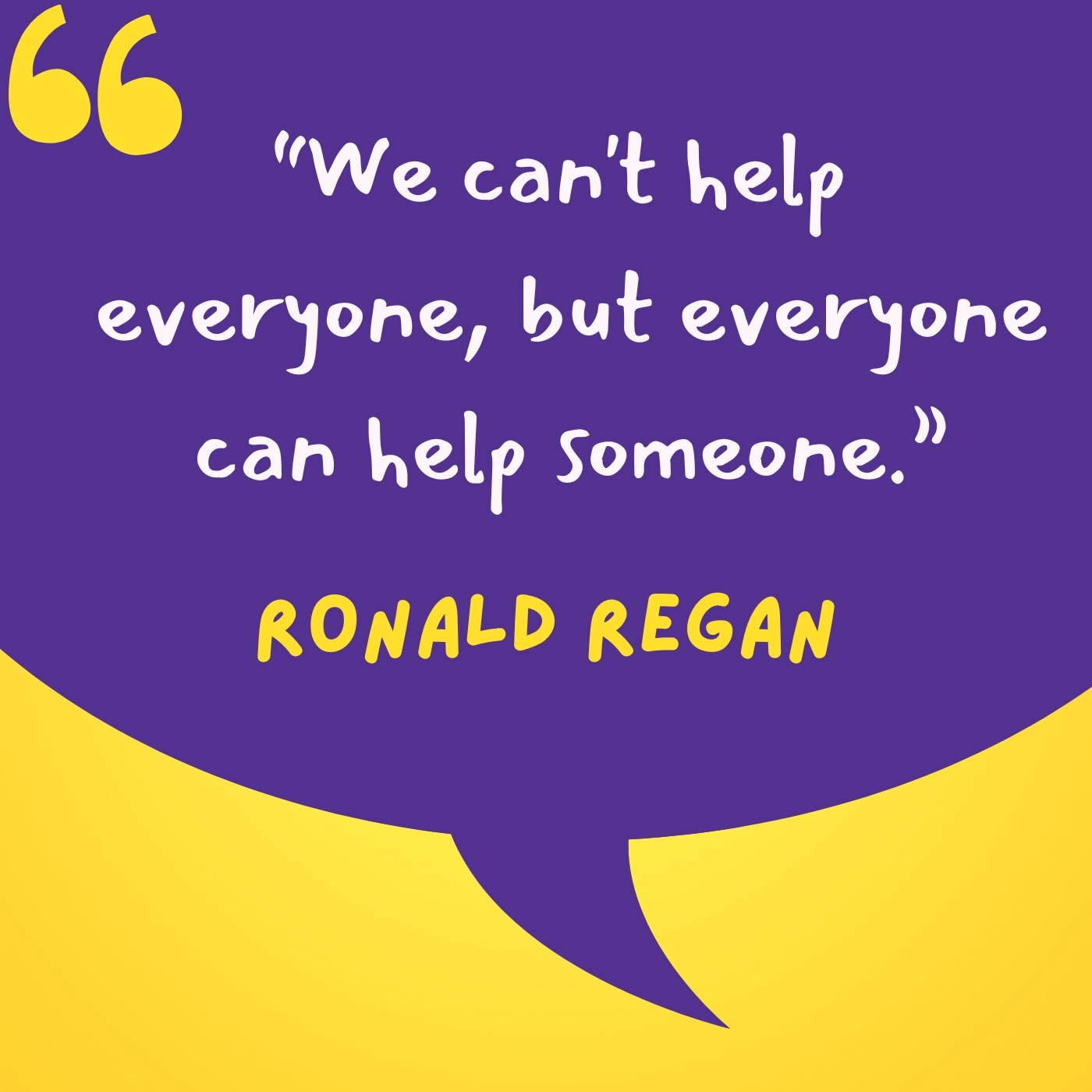 Delve into the profound insight of Ronald Reagan's timeless quote: "We can't help everyone, but everyone can help someone." In a world where the enormity of global challenges might seem overwhelming, these words offer a guiding light. Join us as we explore how this quote encapsulates the power of individual action, reminding us that while we may not be able to solve every problem, we have the ability to make a meaningful impact in someone's life. Discover how even the simplest acts of kindness and compassion can create a chain reaction of positivity, touching lives far beyond our immediate reach. Through anecdotes, reflections, and real-life examples, we'll delve into the deeper meaning behind these words and inspire you to embrace the potential within your grasp.