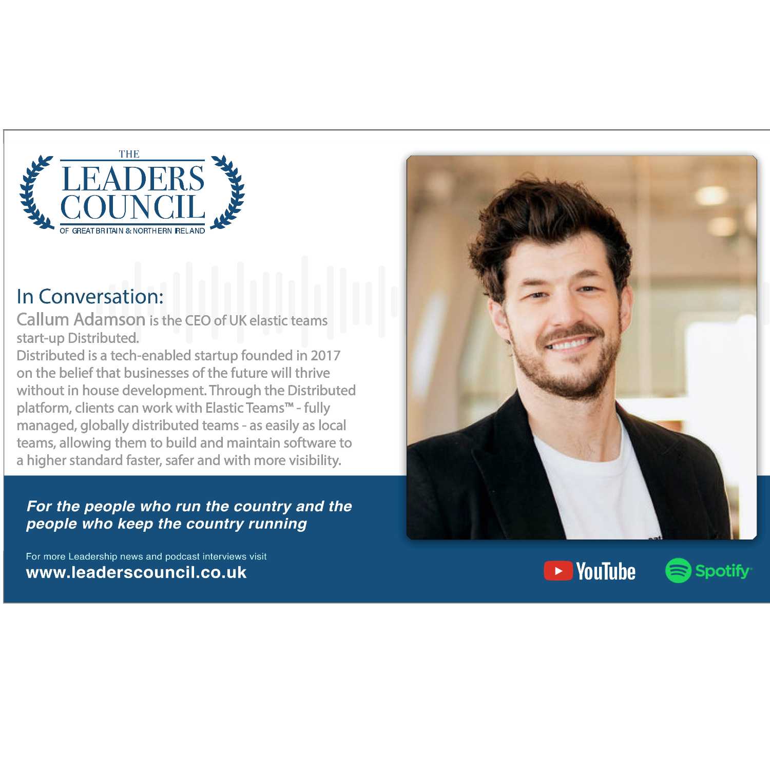 Callum Adamson is the CEO of UK elastic teams start-up Distributed. Distributed is a tech-enabled startup founded in 2017 on the belief that businesses of the future will thrive without in house development.