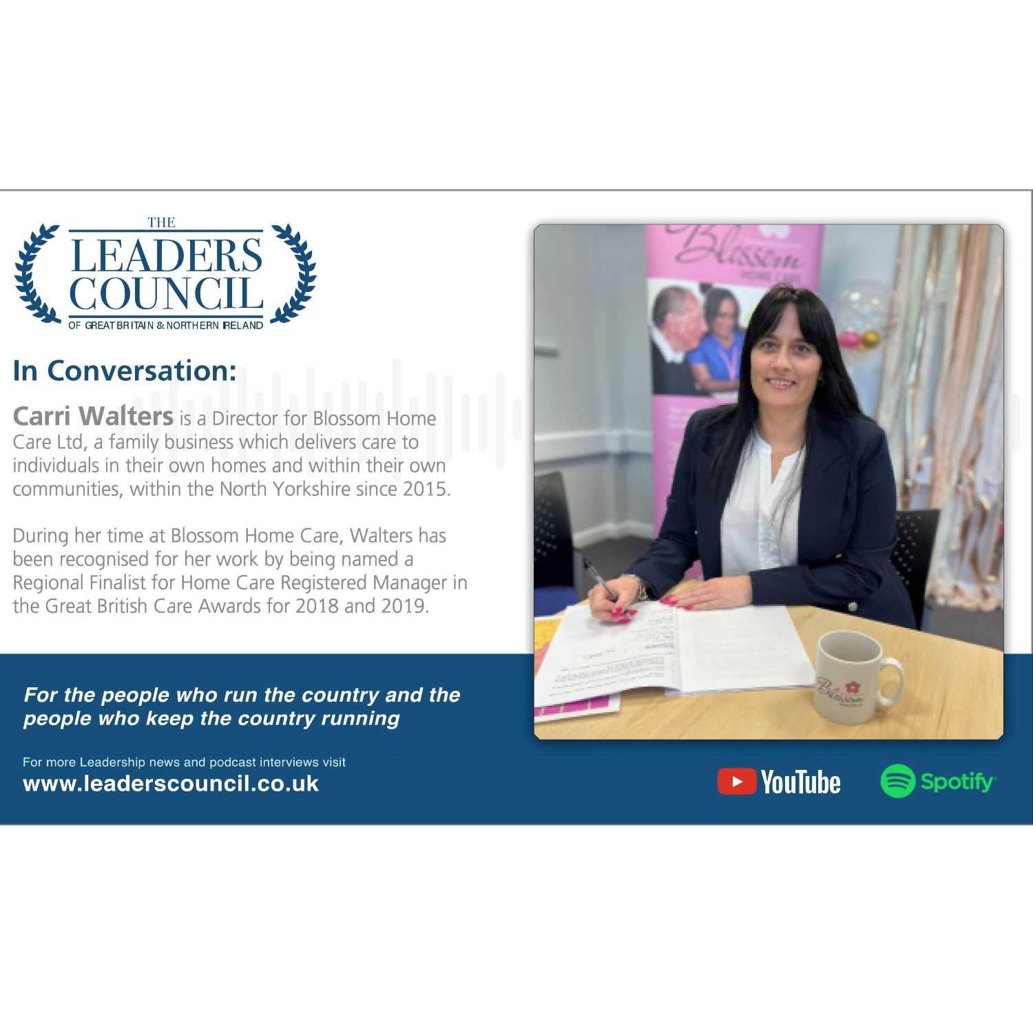 Carri Walters is a Director for Blossom Home Care Ltd, a family business which delivers care to individuals in their own homes and within their own communities, within the North Yorkshire since 2015.