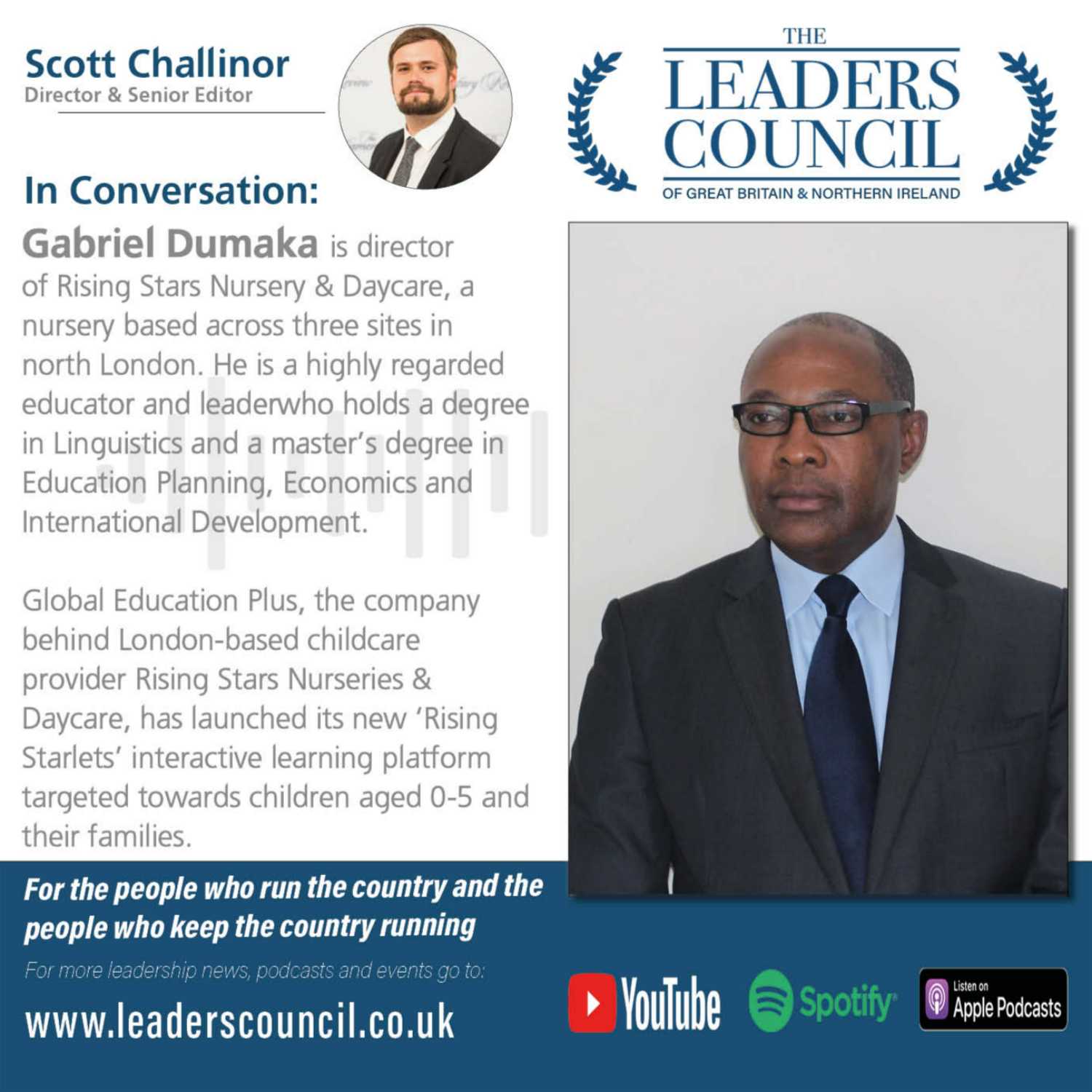 Gabriel Dumaka is director of Rising Stars Nursery & Daycare, a nursery based across three sites in north London. He is a highly regarded educator and leaderwho holds a degree in Linguistics and a master’s degree in Education Planning, Economics and International Development.