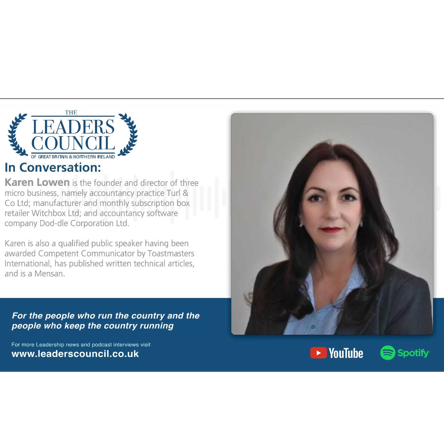 Karen Lowen is the founder and director of three micro business, namely accountancy practice Turl & Co Ltd; manufacturer and monthly subscription box retailer Witchbox Ltd; and accountancy software company Dod-dle Corporation Ltd.