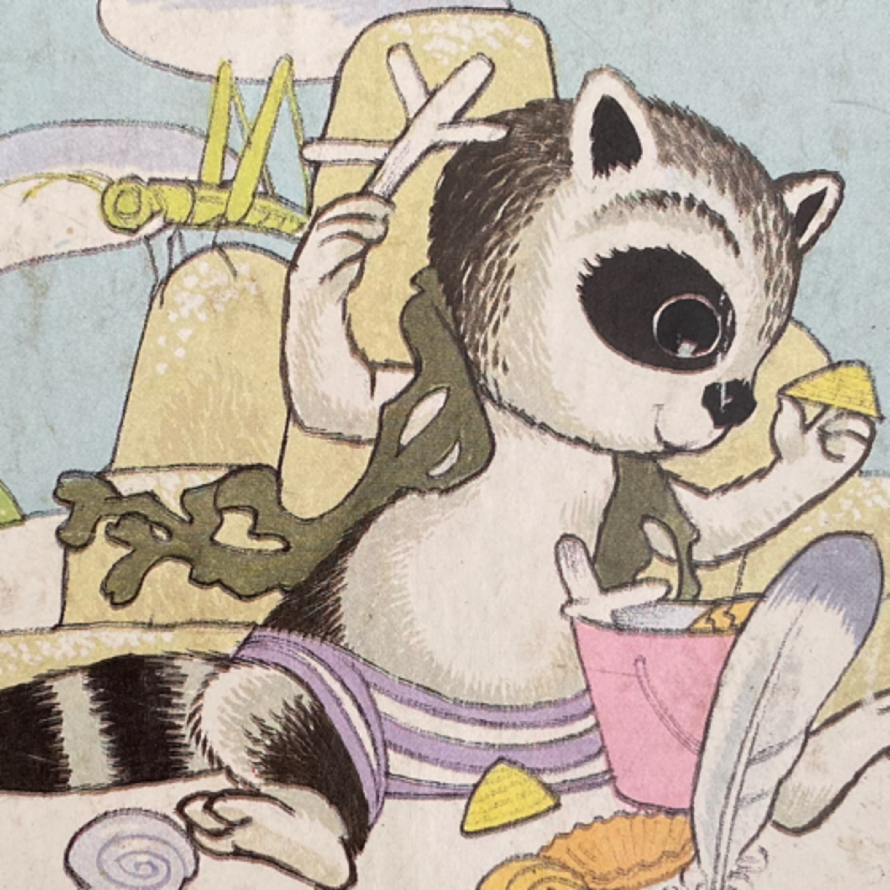 A young raccoon explores the beach and builds a special sandcastle.