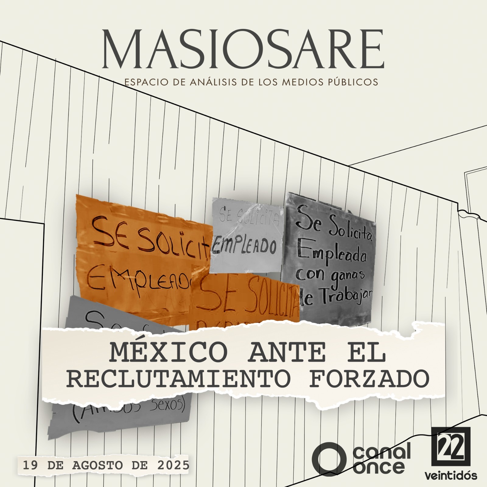 Masiosare es la barra de opinión de los medios públicos donde se discutirán y analizarán los temas que ocupan a la vida pública nacional e internacional desde el periodismo, la economía, el derecho, los discursos y la historia. Hoy nuestros panelistas Luisa Cantú Fabrizo Mejía y Laura Sánchez-Ley debatirán sobre el reclutamiento forzado por Cárteles criminales