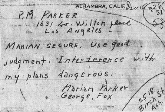 Sen får vi höra om Marion Parker som blir hämtad på ett liknande sätt. En man kommer till hennes skola och säger att hennes pappa har varit med om en bilolycka och han måste hämta hans dotter.