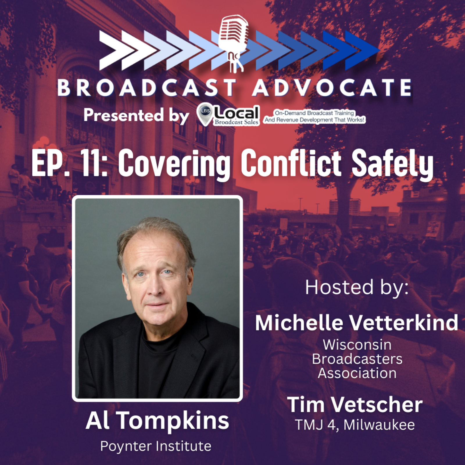 In a must-see episode for broadcast newsrooms across the country, Al Tompkins joins co-hosts Michelle Vetterkind (WI Broadcasters Assoc.) and Tim Vetscher (TMJ 4 , Milwaukee) to discuss measures newsrooms can take to keep journalists safe.