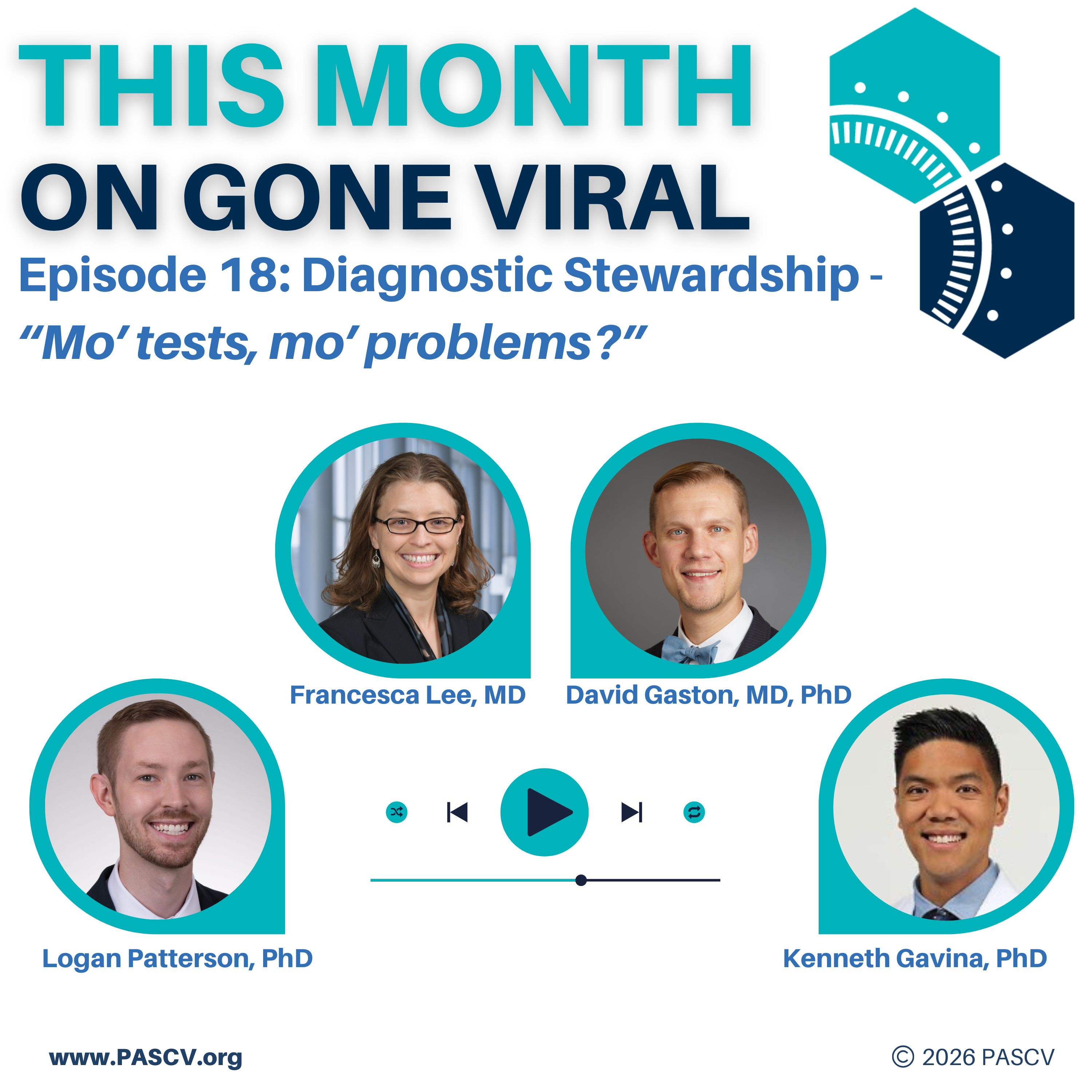 In this episode of PASCV: Gone Viral, hosts Dr. Ken Gavina and Dr. Logan Patterson are joined by experts Dr. Francesca Lee from UT Southwestern and Dr. David Gaston from Vanderbilt University Medical Center to discuss the hot topic of diagnostic stewardship. Listeners will learn about the intricacies of stewardship, including value-based testing, balancing clinical performance with patient needs, and the art of maintaining strong relationships with providers.