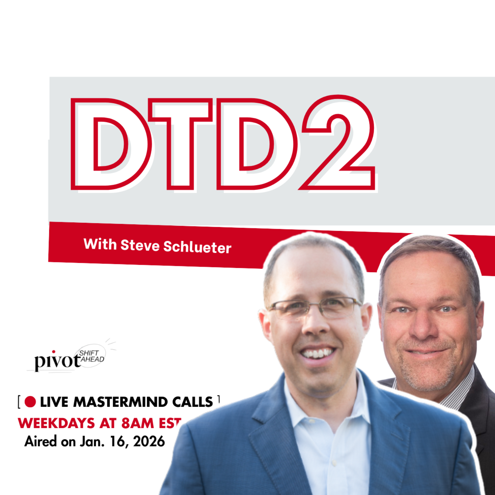 Before we dove deep into database communication, you shared your biggest takeaways from our week on Past Clients during the pre-show. Are you ACTUALLY calling your database? We wanted to make sure you are! That is why creator of DTD2 Steve Schlueter is back to Pivot: SHIFT Ahead to show you how its done. After touring the "SHIFT" book by Gary Keller, Steve came up with a system that allows real estate agents to reach everyone on their database, two letters at a time.