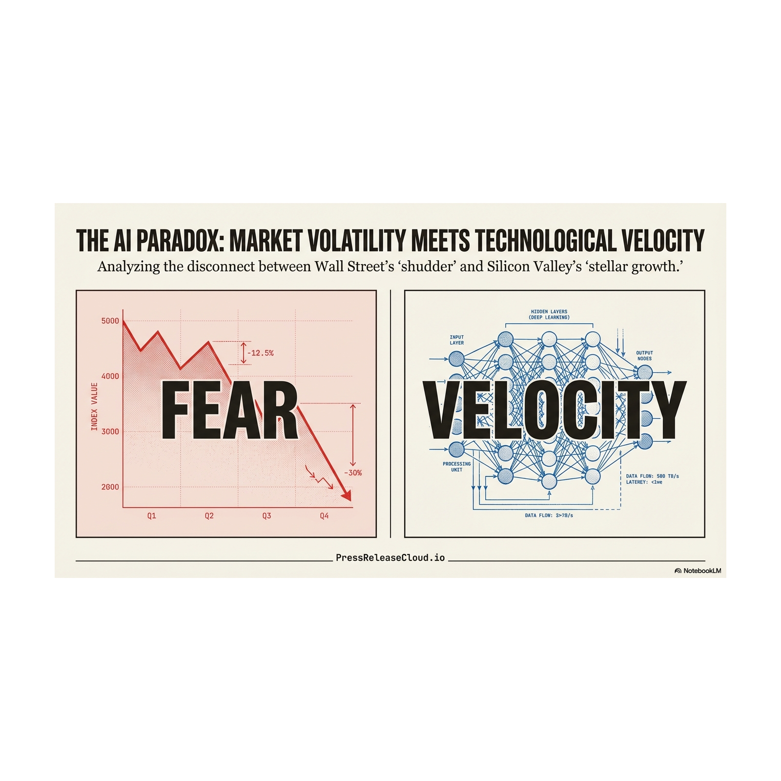 While major companies like Google and Nvidia strive for market dominance, the industry faces significant financial instability, including fears of a bursting tech bubble and plummeting software stocks.