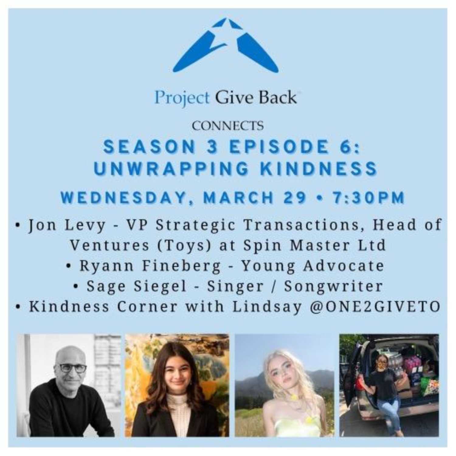 Welcome to Season 3 Episode 6. These experts know a thing or two about leading with kindness and they are here to lead us through some valuable lessons. You will meet Jon Levy, VP of Strategic Transactions, Head of Ventures (Toys) at Spin Master Ltd. Our dynamic, young, shining star this week is Ryann Fineberg. We will also be treated to performance by SAGE. Lindsay is back with a Kindness Corner segment to wrap it all up.