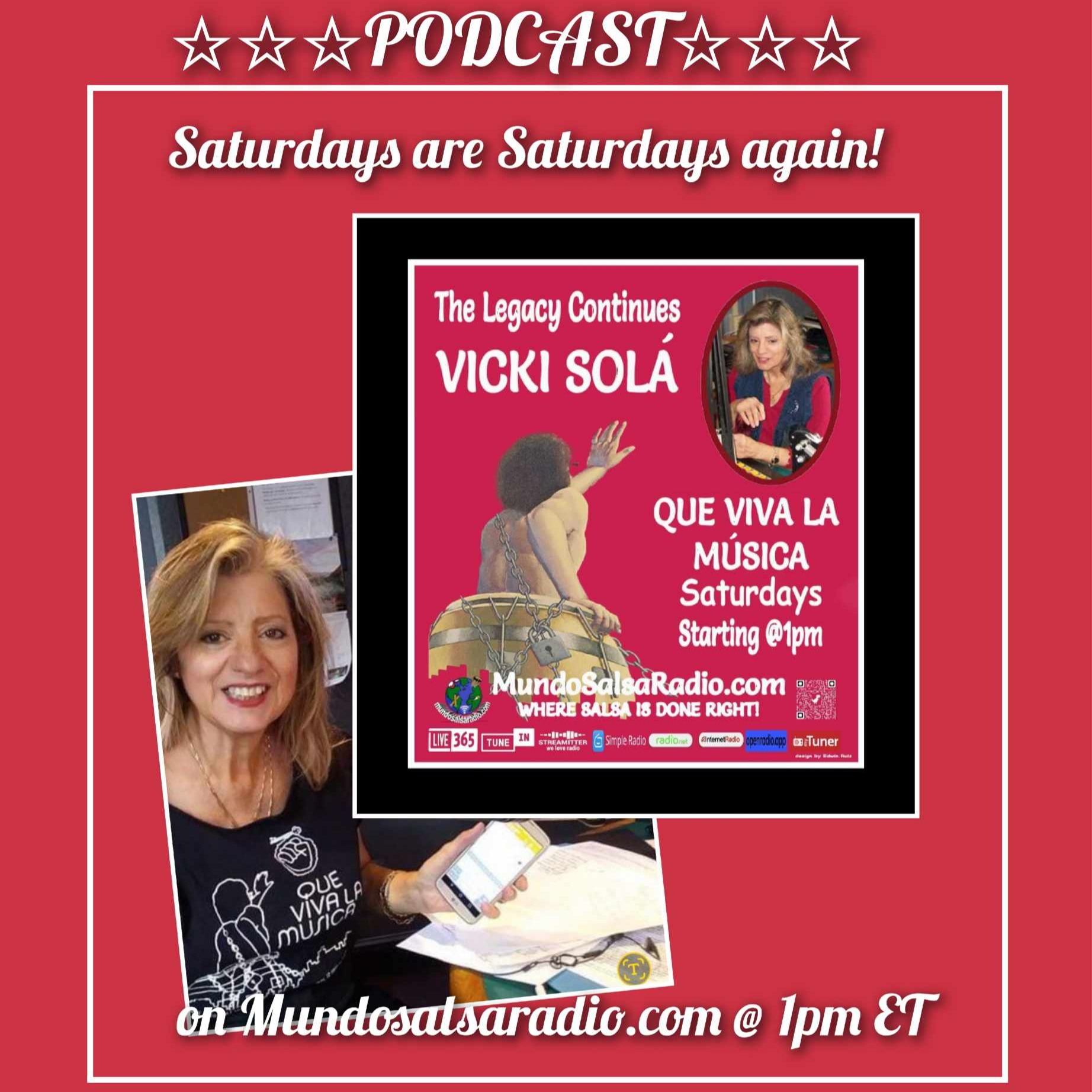 Listen here to the podcast of our August 24th, 2024 edition of celebrated Latin music radio program Que Viva La Música, created decades ago by Vicki Solá, now streaming worldwide direct from the NYC-metro area on Mundo Salsa Radio (mundosalsaradio.com) Saturday afternoons from 1-6 pm (ET). Enjoy Salsa, Afro-Cuban Jazz, Charanga, Latin Soul and more—classic, new, and live—right here! Listen from any mobile device, computer, or tablet.