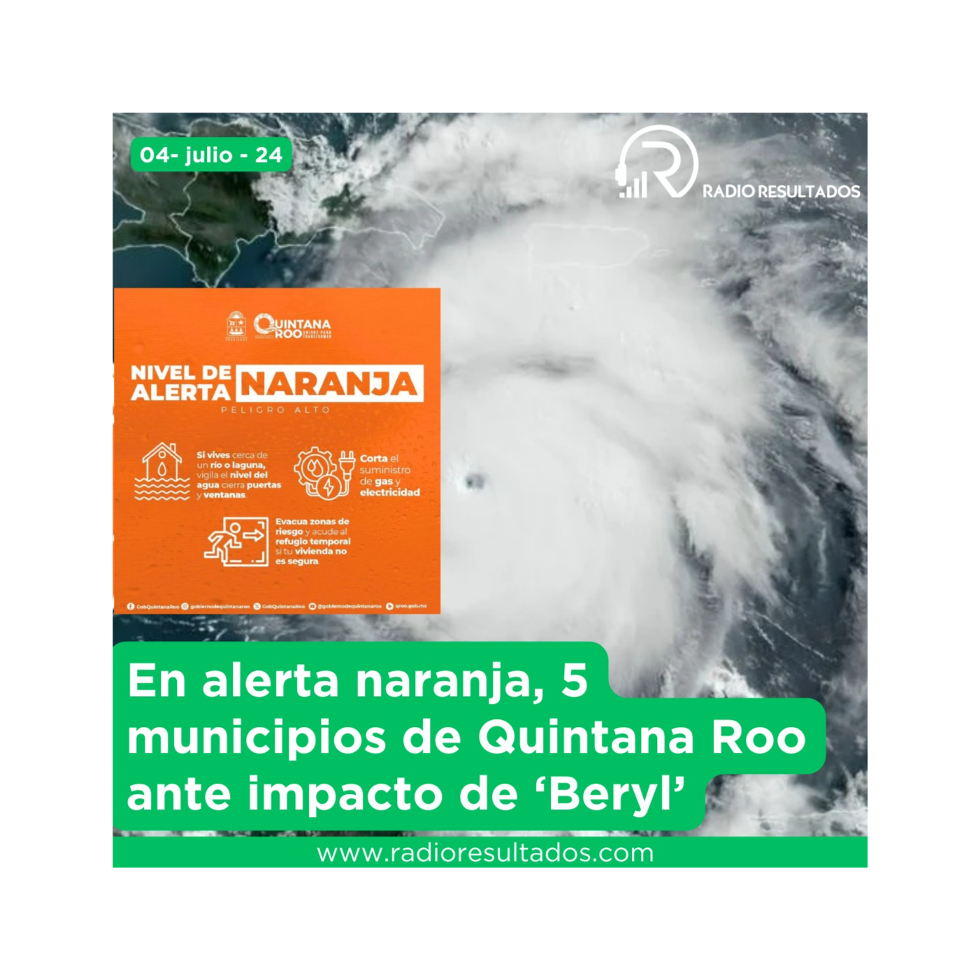 En alerta naranja, 5 municipios de Quintana Roo ante impacto de ‘Beryl’.