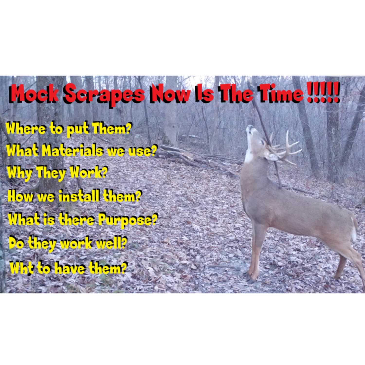 This week we Karl and Mike discuss Mock scrapes. How they set them up. Where they think the most productive position is for your use of them. What materials they use, and think are the most productive for these traps. They then tell you what they place at each of the scrapes to make the the most productive for intel, and use. (Bet you have that part already) They also hit on many things they believe you should not do in these areas. Then a few strategies on how to hunt the mock scrapes in general. Thanks for watching we appreciate each of you hit the subscribe button for us, and leave us some feed back in the comments we appreciate and will answer any of your questions. Thanks for watching!