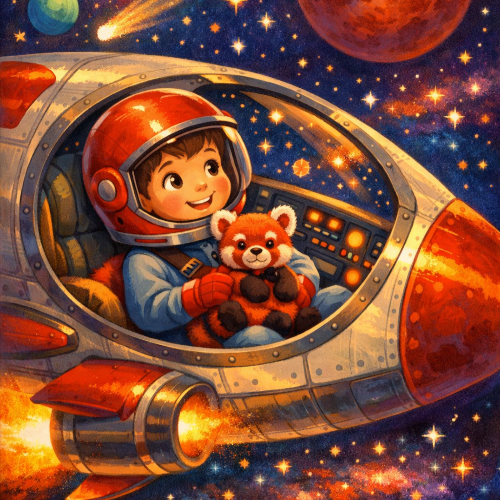 An original kids' audiobook bedtime story for toddlers and preschoolers. Captain Ryan suits up in his red helmet and launches into space on a rescue mission — Baby Panda is stranded on Mars and only Captain Ryan can bring him home. But when his navigation goes dark deep in space, Captain Ryan discovers that a kid with two homes always knows the way back. A cozy, imaginative space adventure about bravery, belonging, and the kind of love that never loses its signal. Read aloud by dad. Perfect for bedtime, car rides, and quiet time.