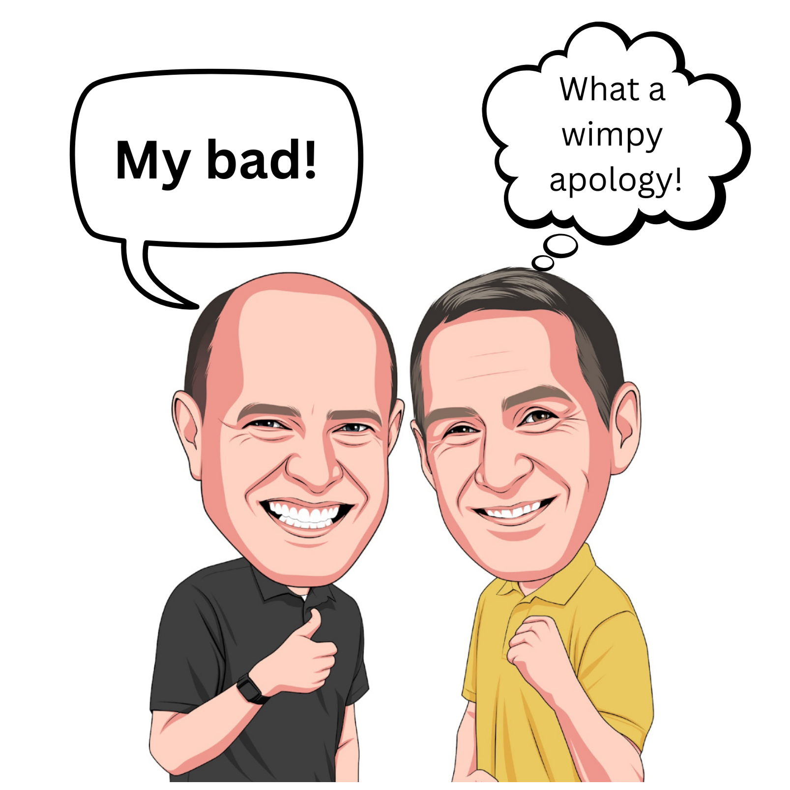 -The phrase 'my bad' is a weak apology.