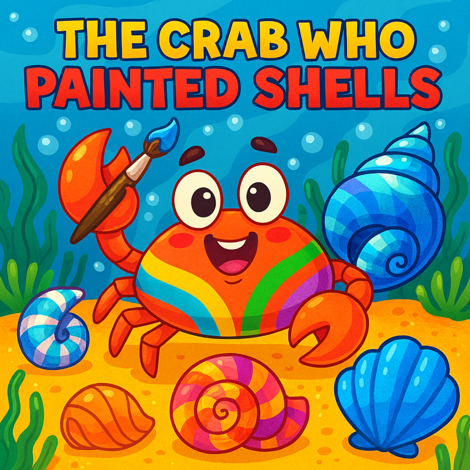 "The Crab Who Painted Shells," focusing on a crab named Hermie who brightens his community through artistic expression. Initially, Hermie faces skepticism from others who prioritize practical activities over his shell painting. However, the arrival of children who appreciate his colorful creations transforms the beach into a vibrant art festival.