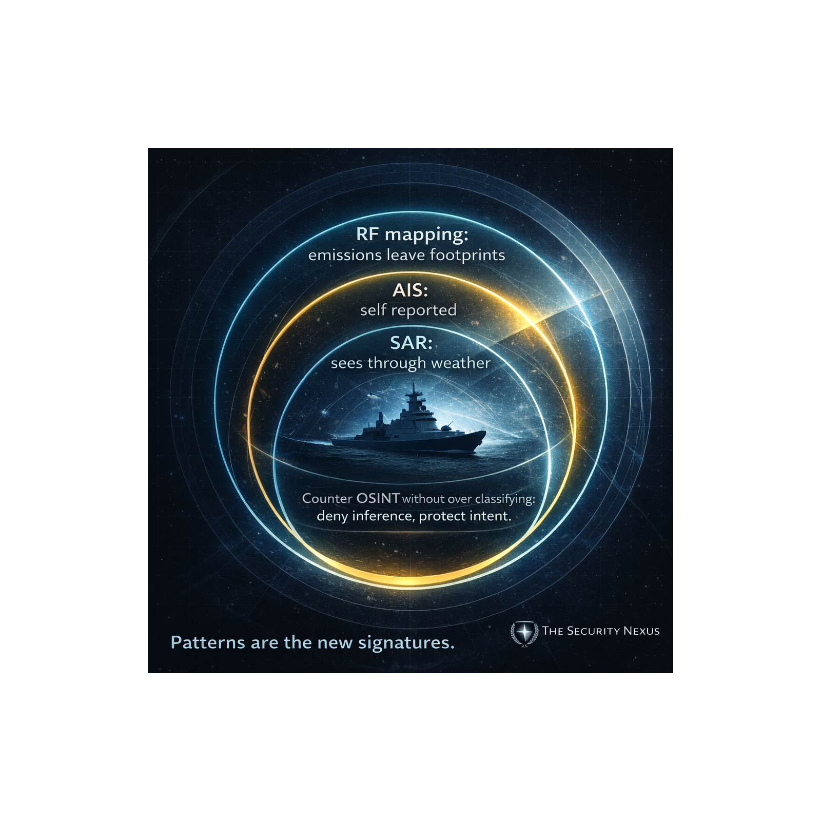 Commercial maritime sensing has made it easier to build naval order-of-battle estimates from open sources. AIS provides identity and patterns but is vulnerable to spoofing and manipulation. SAR detects ships regardless of cooperation, and fusion approaches exploit mismatches between AIS and imagery to identify anomalies and “dark ships.” Commercial RF mapping can add another layer of behavioral evidence when AIS goes silent. States should counter OSINT by reducing adversary inference through emission discipline, selective disclosure, AIS governance, and better internal sharing, rather than defaulting to overclassification.