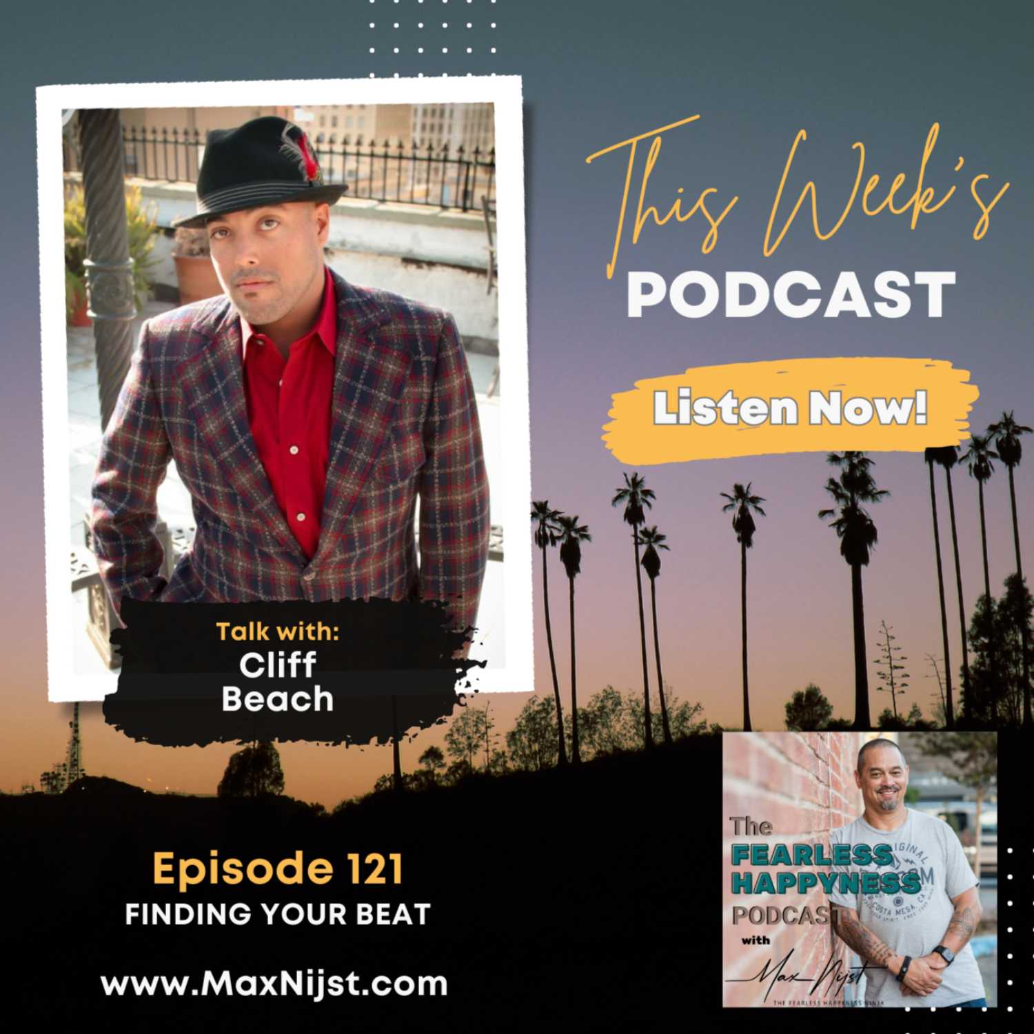 Listen in as Cliff, and I discuss his passion for life and music, why you shouldn’t wait to get off the couch and pursue your dreams, and how doing more of what he loves has led him to a path of FEARLESS HAPPYNESS!