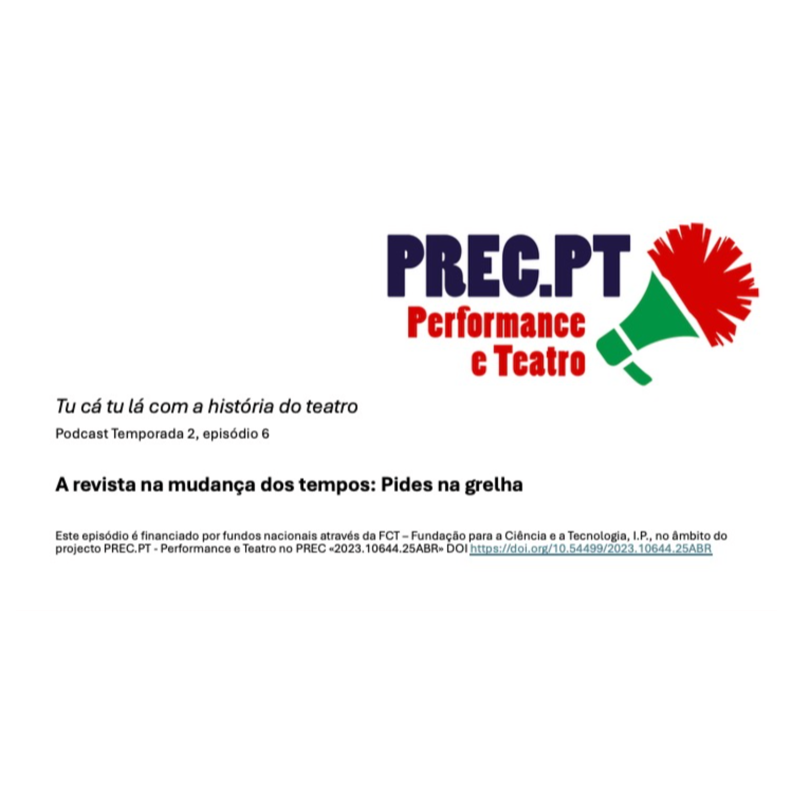 Este episódio é financiado por fundos nacionais através da FCT – Fundação para a Ciência e a Tecnologia, I.P., no âmbito do projecto PREC.PT - Performance e Teatro no PREC «2023.10644.25ABR» DOI https://doi.org/10.54499/2023.10644.25ABR