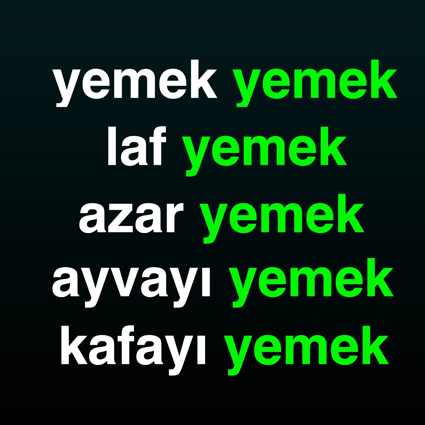 Phrases like "laf yemek," "azar yemek," and "kafayı yemek"