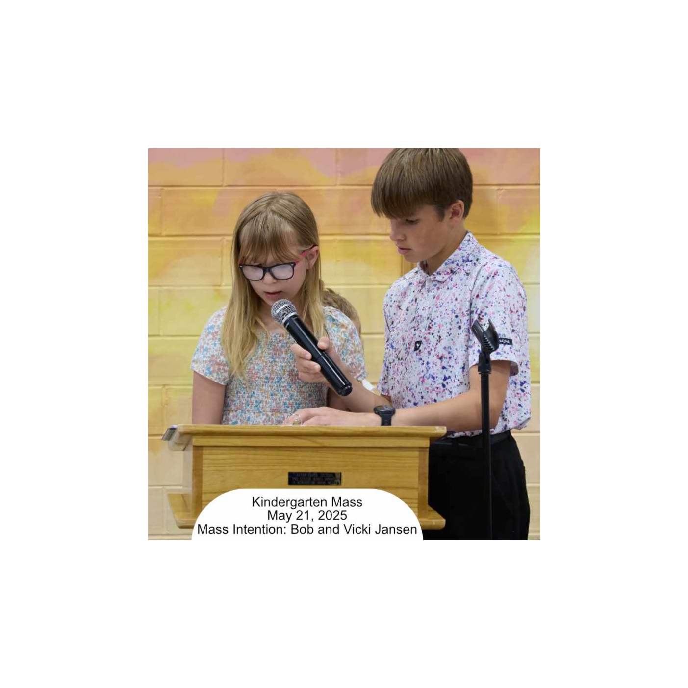 Fr Patrick celebrates Mass with the kids at St. Malachy School in Creston, Iowa.