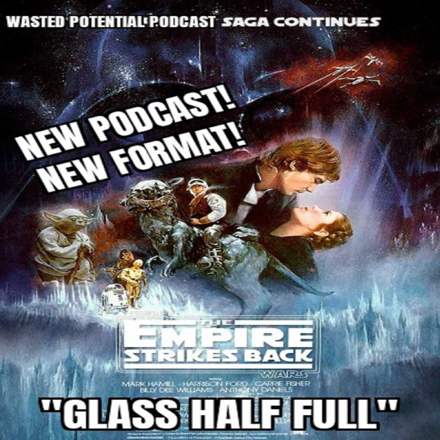 Wasted Potential Podcast presents Glass Half Full! This is our new podcast segment in which we discuss a movie that we love after a recent viewing. It is a more positive approach than usual from our team. For our first episode, we discuss Star Wars: the Empire Strikes Back, a little known film, and address its merits and talk about when we first saw it, our recent reaction, things we love about the film, and we say provide ways to change it. Let us know how you like the new format, but we will still have commentary tracks.