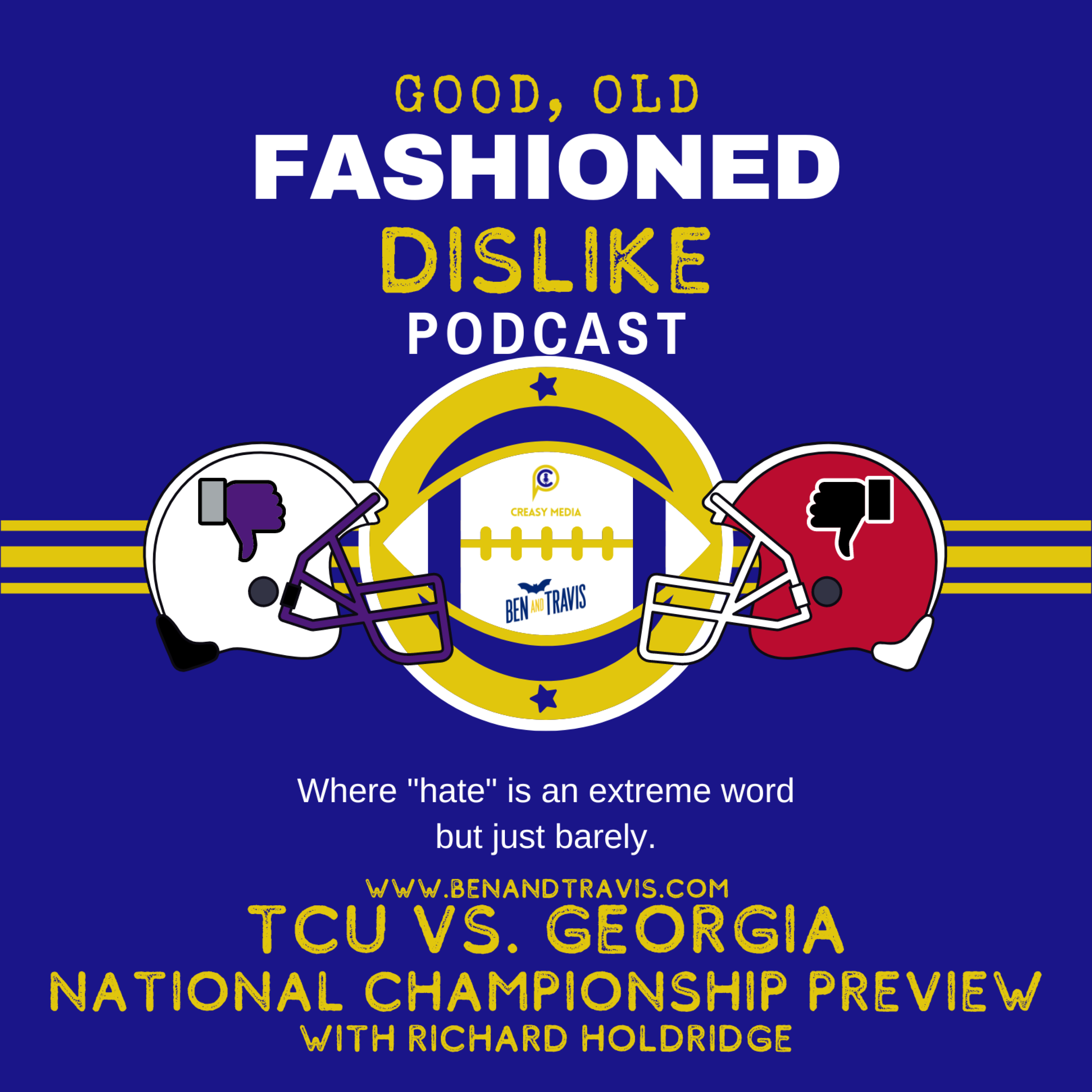 Richard Holdridge from "The Sports Beat with Richard Holdridge" joins the Panel of Dislike to breakdown this Monday's National Championship matchup between the defending National Champions Georgia Bulldogs and the Texas Christian Horned Frogs. The guys make their picks and try not to let their SEC bias show. Richard also gives us his early Super Bowl matchup prediction as well.