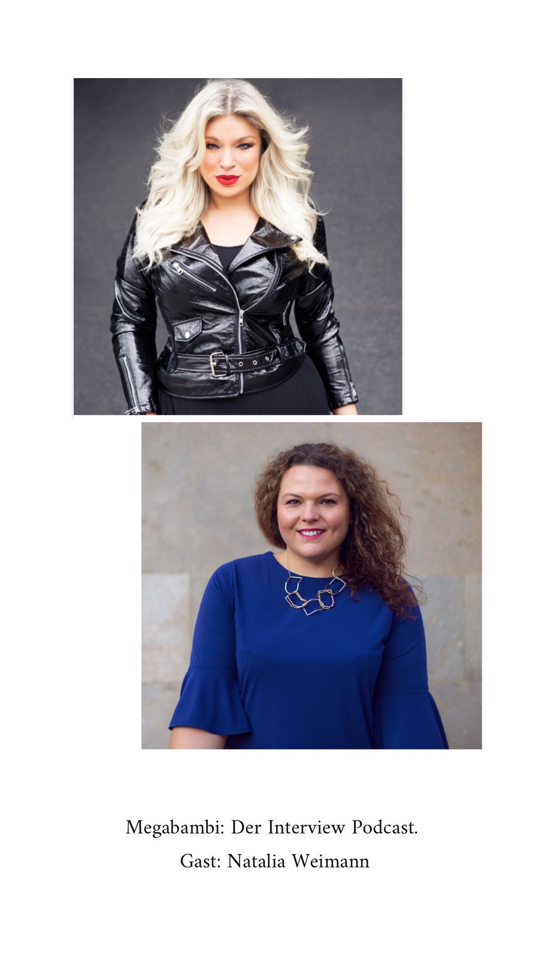 Natalia Weimann, mein erster Podcast Gast hat Ihre Leidenschaft im Bereich Mode gefunden. Sie hat 2010 das Modelabel Weimann völlig im Alleingang gegründet. Sie hatte den Traum, nur mit hochwertigen Materialen Kollektionen zu entwerfen- und zwar auch jenseits der gängigen Größennormen. Wir reden über Ihre Sicht der Plus Size Szene damals und heute. Wie sie ihr Leben als junge Mutter und Gründerin gemeistert hat. Wie sie heute über Plus-Size denkt und was sie heute in ihrem Leben so macht, erfahrt Ihr im Podcast.
