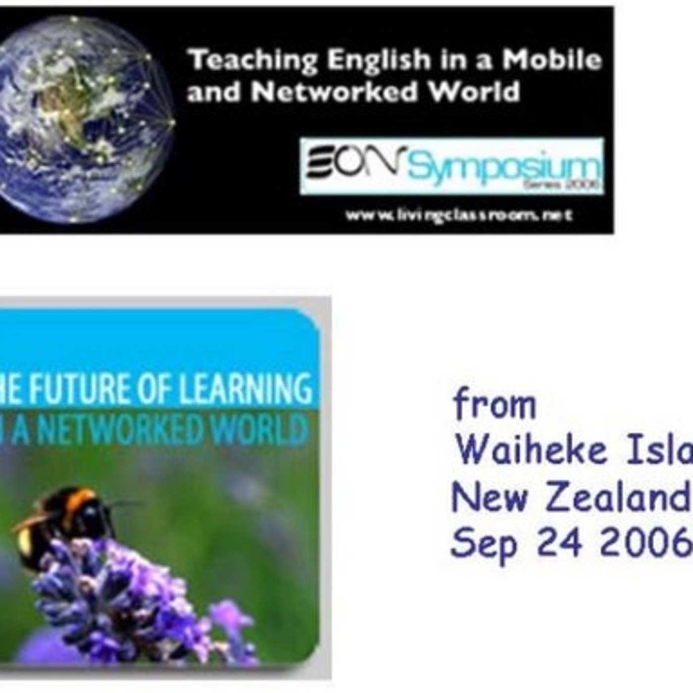 This is the audio from an online discussion jointly hosted by the EON Foundation, and the Future of Learning in a Networked Conference in Waiheke Island in New Zealand. It features Barbara Dieu, Teemu Leinonen and Alex Hayes (briefly), Moira from France, Damon from Vancouver, Tim from Napier and Ali and Amy from ? There are occasional references to the content that was on the whiteboard (the session was held in a virtual classroom courtesy of LearningTimes - learningtimes.org). About 1 hour in length.